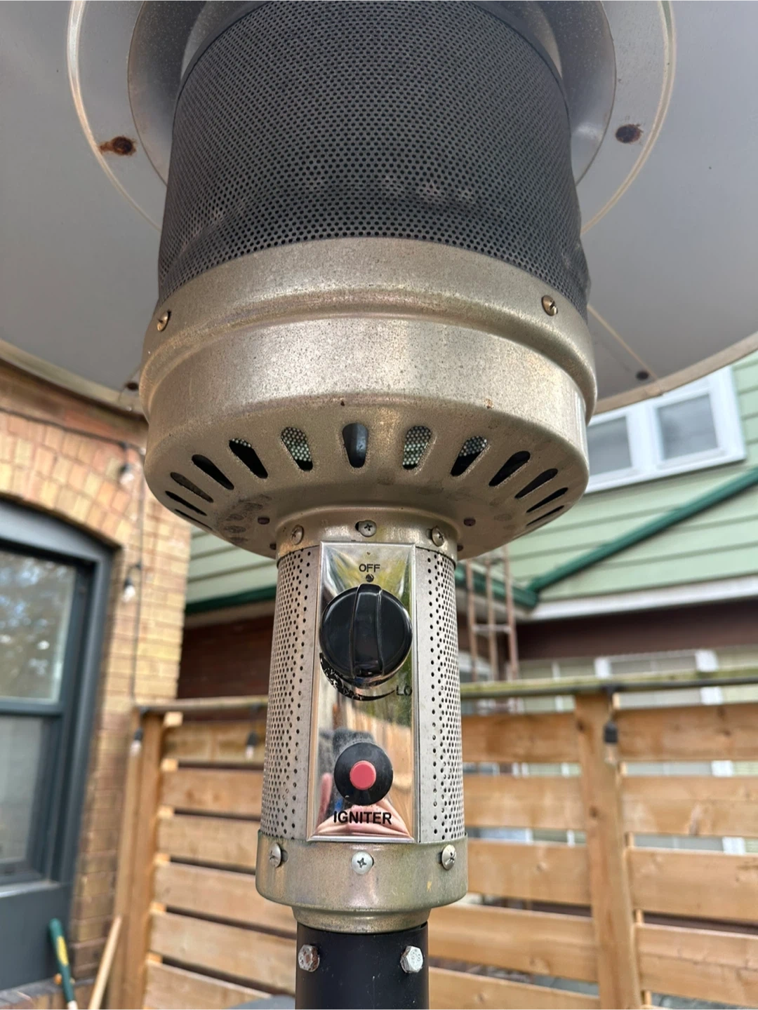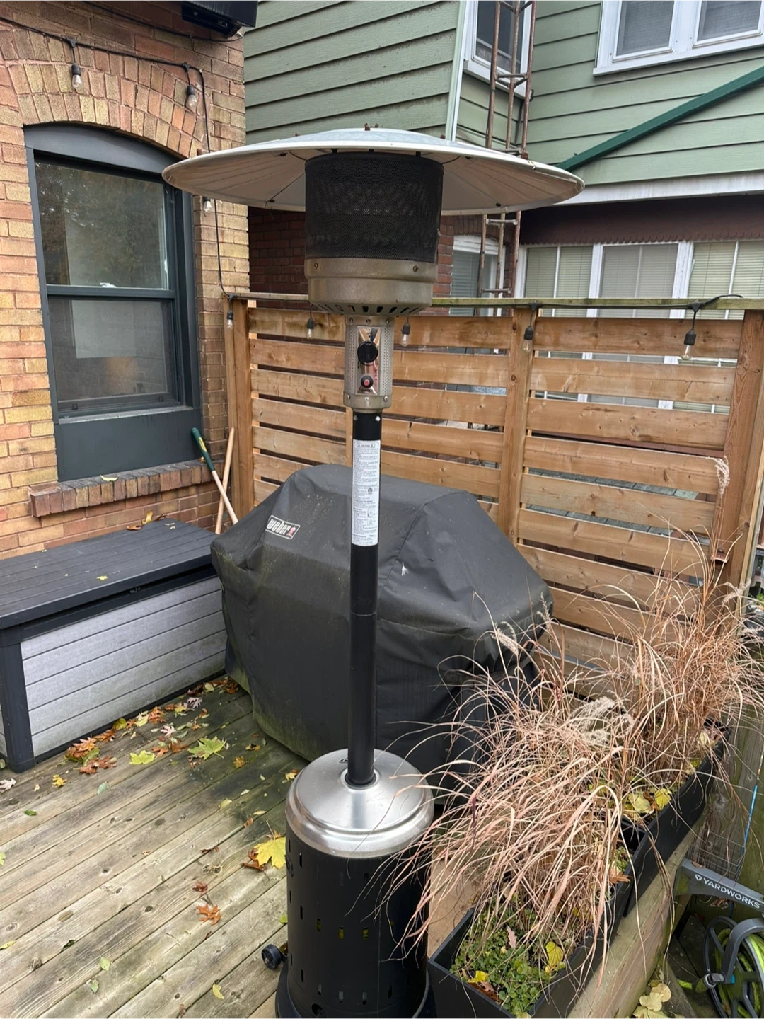 44Outdoor patio heater by Paramount. It's in good condition and comes with 2 propane bottles.