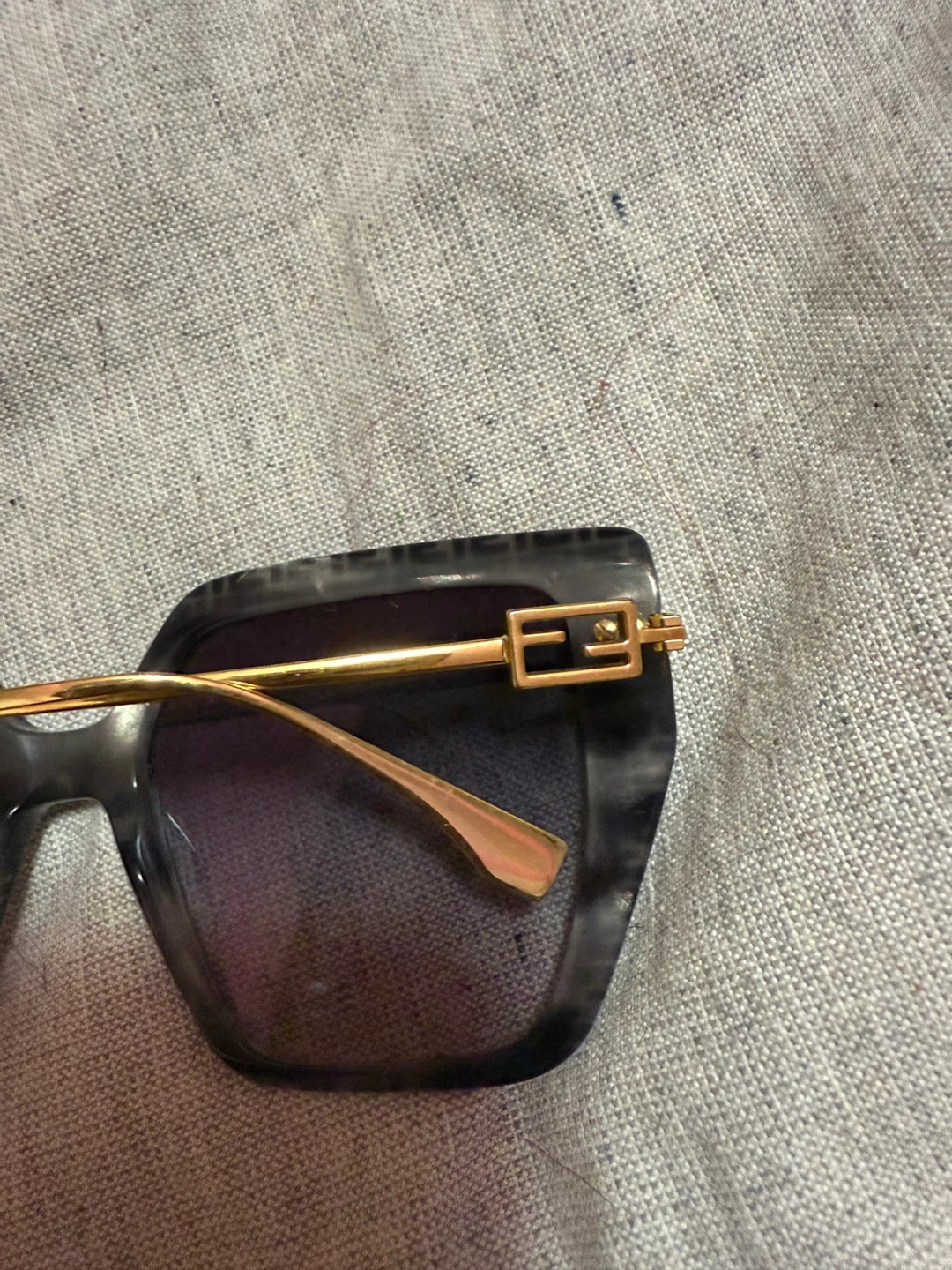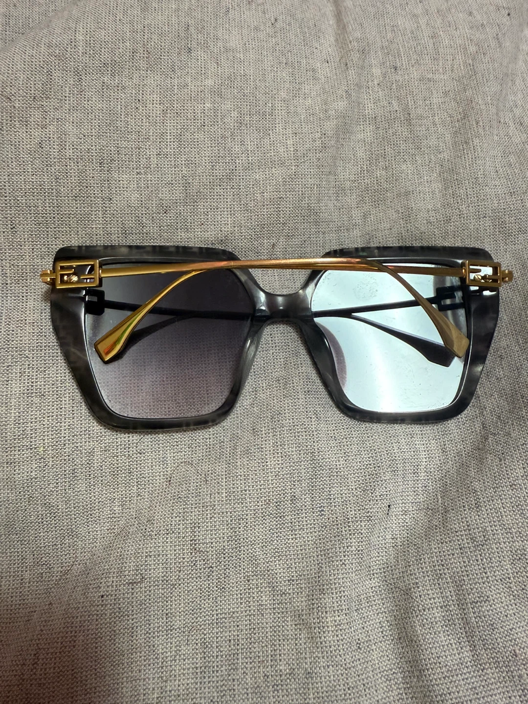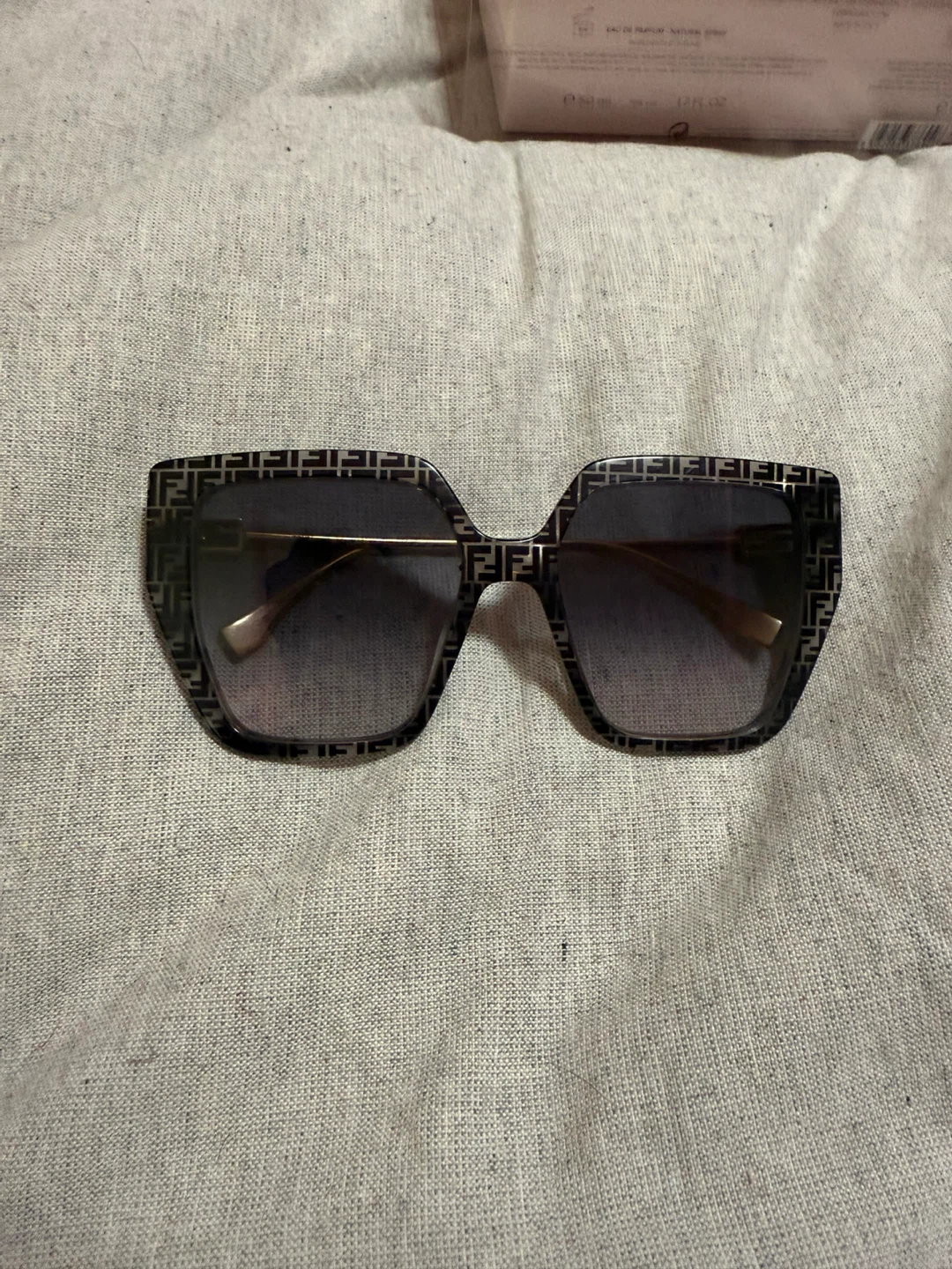 Selling a pair of Fendi Baguette sunglasses, model FE40012U 55F! They feature the classic Fendi logo pattern on the frames and stylish gold accents. These sunglasses are perfect for adding a touch of luxury to any outfit