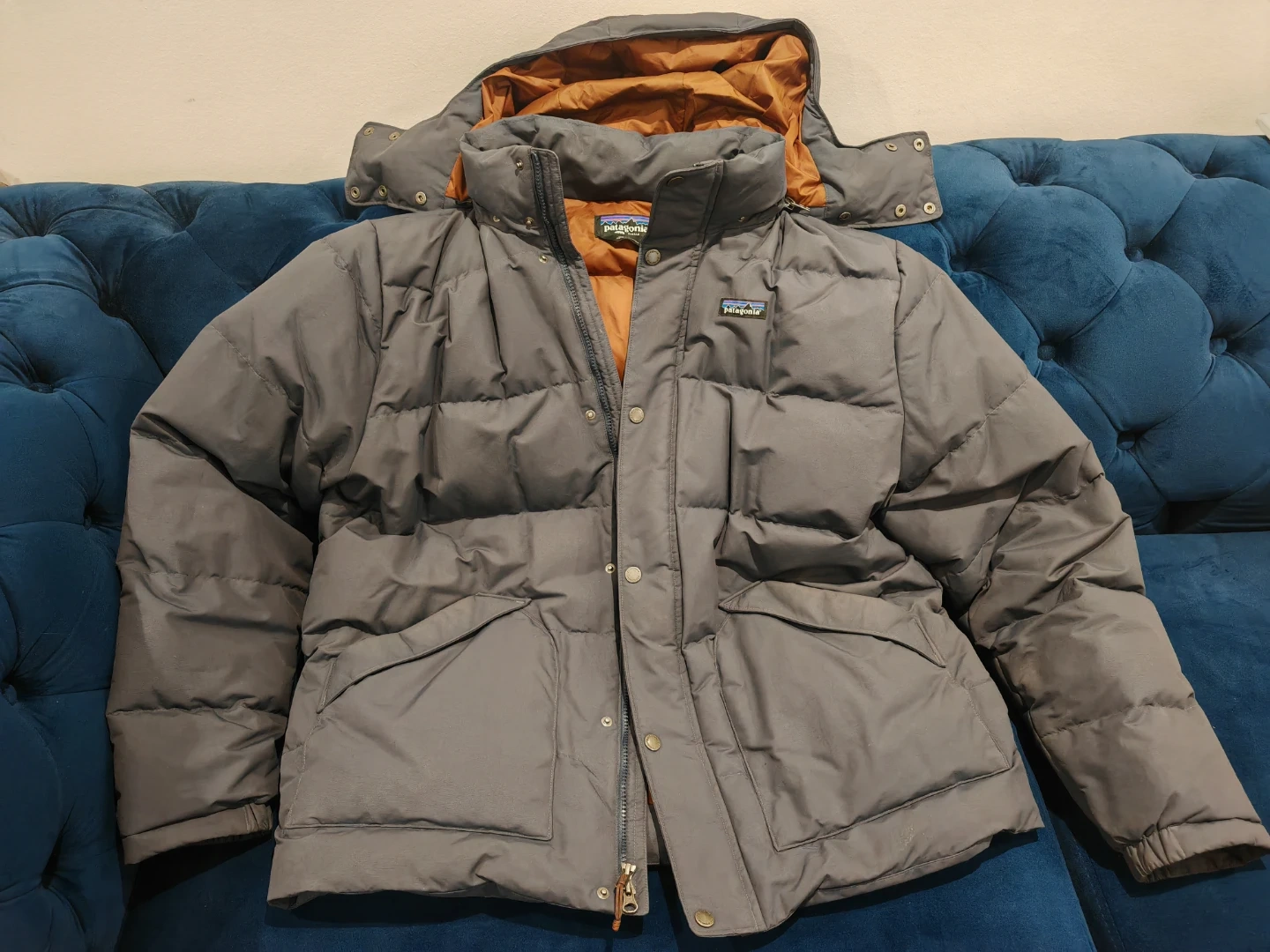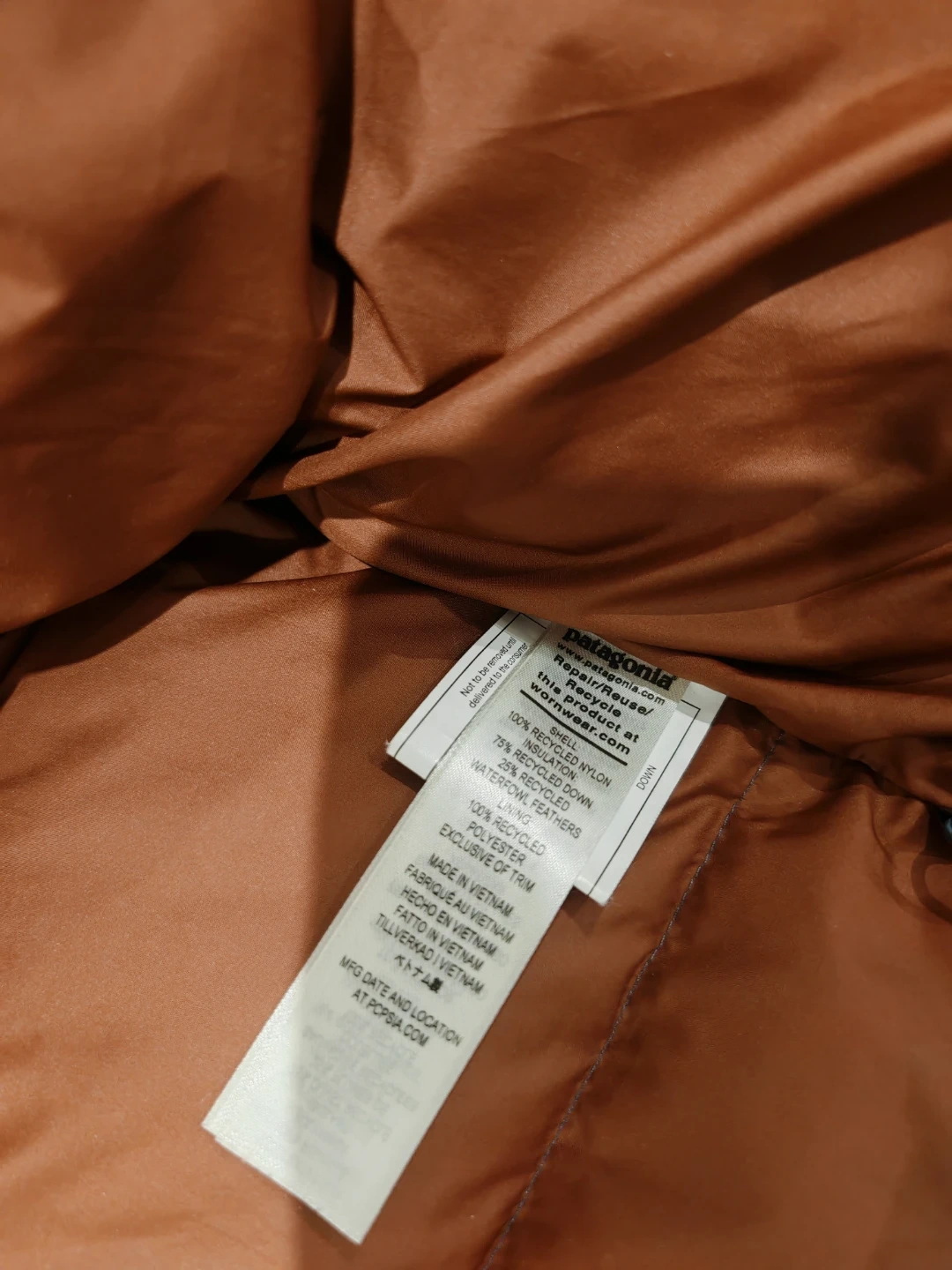 Selling a Patagonia Netplus Shell down jacket in size XL for men. It's a stylish and warm jacket, perfect for the Canadian weather! The outer shell is made of 100% recycled nylon and insulated with 100% recycled down. The lining is polyester. The jacket has a cool grey colour.
