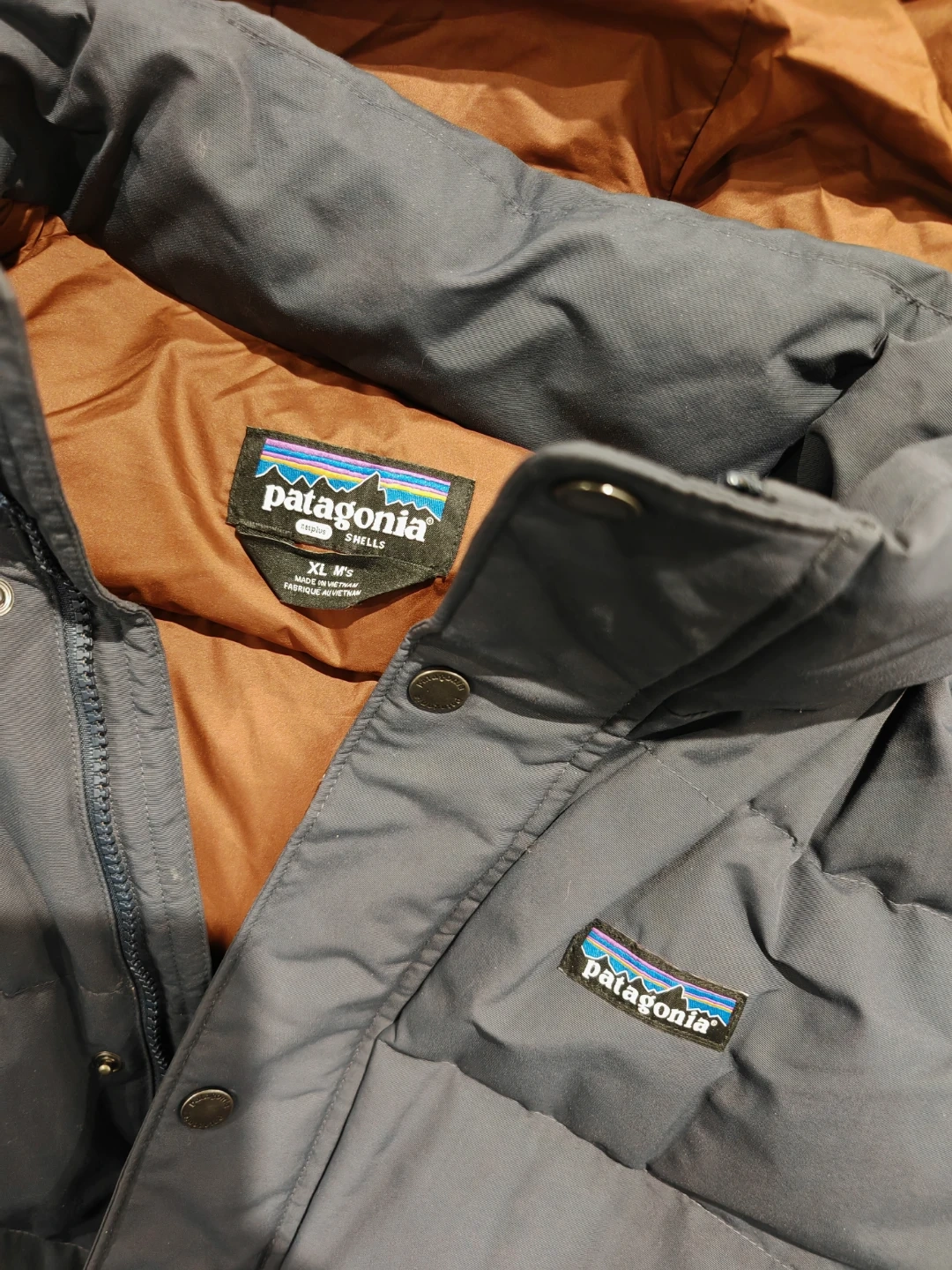 Selling a Patagonia Netplus Shell down jacket in size XL for men. It's a stylish and warm jacket, perfect for the Canadian weather! The outer shell is made of 100% recycled nylon and insulated with 100% recycled down. The lining is polyester. The jacket has a cool grey colour.