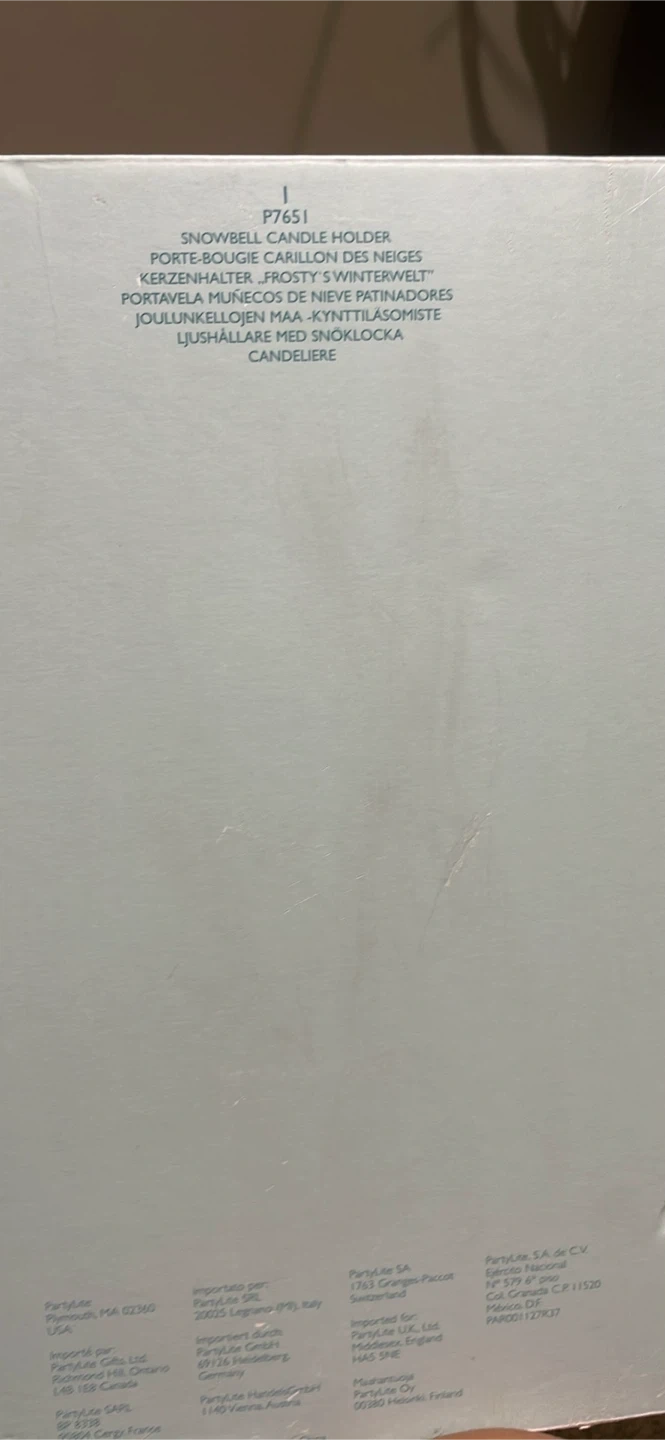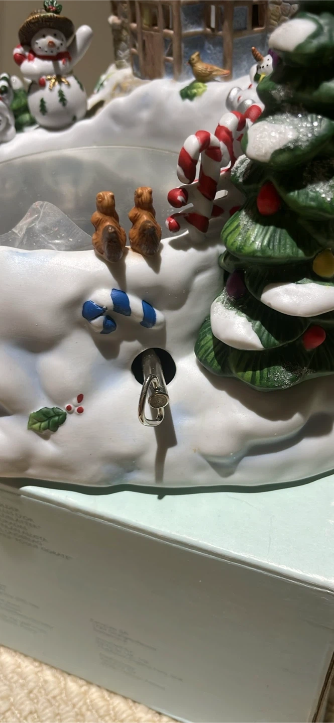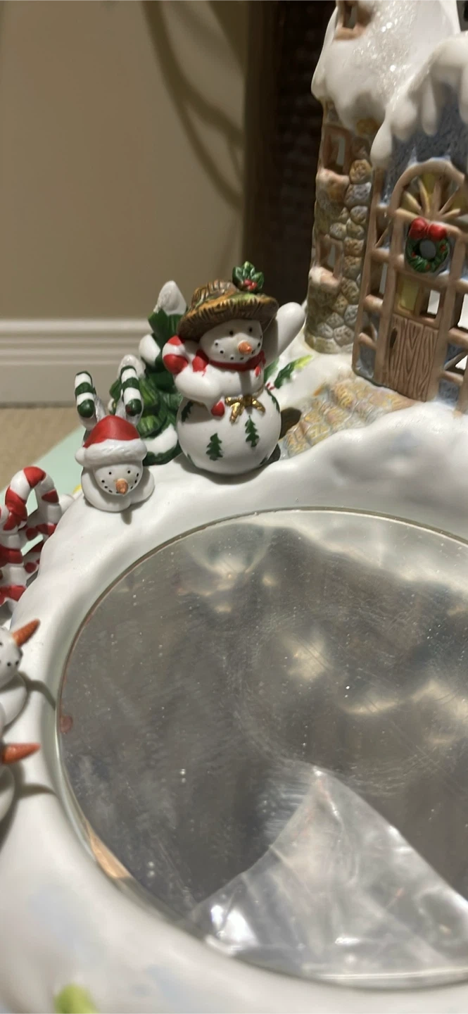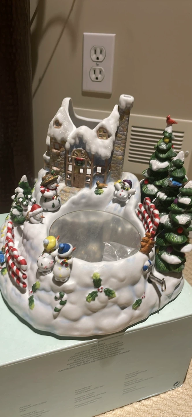 Selling a Partylite Snowbell candle holder! Brand New in box and ready to bring some winter charm to your home or to be gifted to someone special. This festive piece features a snowy scene with snowmen, candy canes, and a Christmas tree. It has a wind-up key to play music! Has an ice skater in package that goes on the ice rink too!