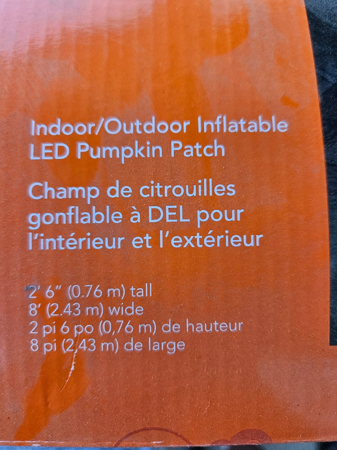 Get ready for Halloween with this fun inflatable LED pumpkin patch from For Living! Perfect for both indoor and outdoor use. It's 2' 6" (0.76 m) tall and 8' (2.43 m) wide when inflated. Self-inflates in seconds and features 7 super bright cool white LEDs