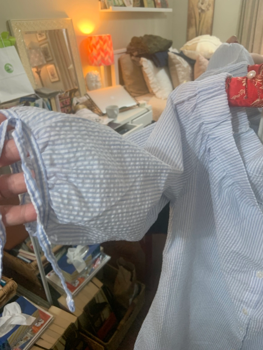 96• MINT CONDITION ! • PASSPORT • 3/4 SLEEVES WITH TIES • BUTTONS • SUPERMAN FRESH AND BREATHABLE • WOMEN’S NAUTICAL BLUE•WHITE EITHER WIRN AS DRESS OR LONG SHIRT • SEE MY DENIUM SHORTS TO MATCH TOP • SIZE•XL • LENGTH 31.5 ‘ INCHES WIDTH 21 ‘ INCHES • 55 % COTTON • 45% POLYESTER • $10 • MAIN INTERSECTIONS ARE HURONTARIO•STEELES JUST BEFORE DOWNTOWN BRAMPTON