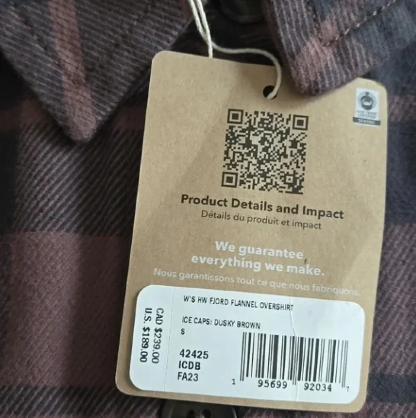 Patagonia Fjord Heavyweight Flannel Overshirt Brand New With Tags Women's Size Small Full price $239 + tax This oversized jacket is designed for easy layering and is made from the much-loved heavyweight Fjord 100% Cotton in Conversion (CIC) brushed twill flannel. CIC supports farmers on the path to organic certification. - Relaxed fit - Oversized low hip length with shirt tail hem create a warm, flattering fit with bum coverage - Front button closure can be done all the way up for warmth or open for airflow and styling versatility - Two chest pockets with button closures keep valuables safe and accessible - Relaxed oversized fit, shirt tail hem and low hip length for a warm, flattering fit and bum coverage - Fair Trade Certified™️ sewn - 8.2-oz 100% Cotton in Conversion brushed twill flannel with a peached face https://www.altitude-sports.com/products/patagonia-fjord-heavyweight-flannel-overshirt-womens-llll-pat-42425?srsltid=AfmBOorUloDE8eHeWMFDzDA4ofBxD5ELjwXyAPVkO52XH64CUraT2_yt