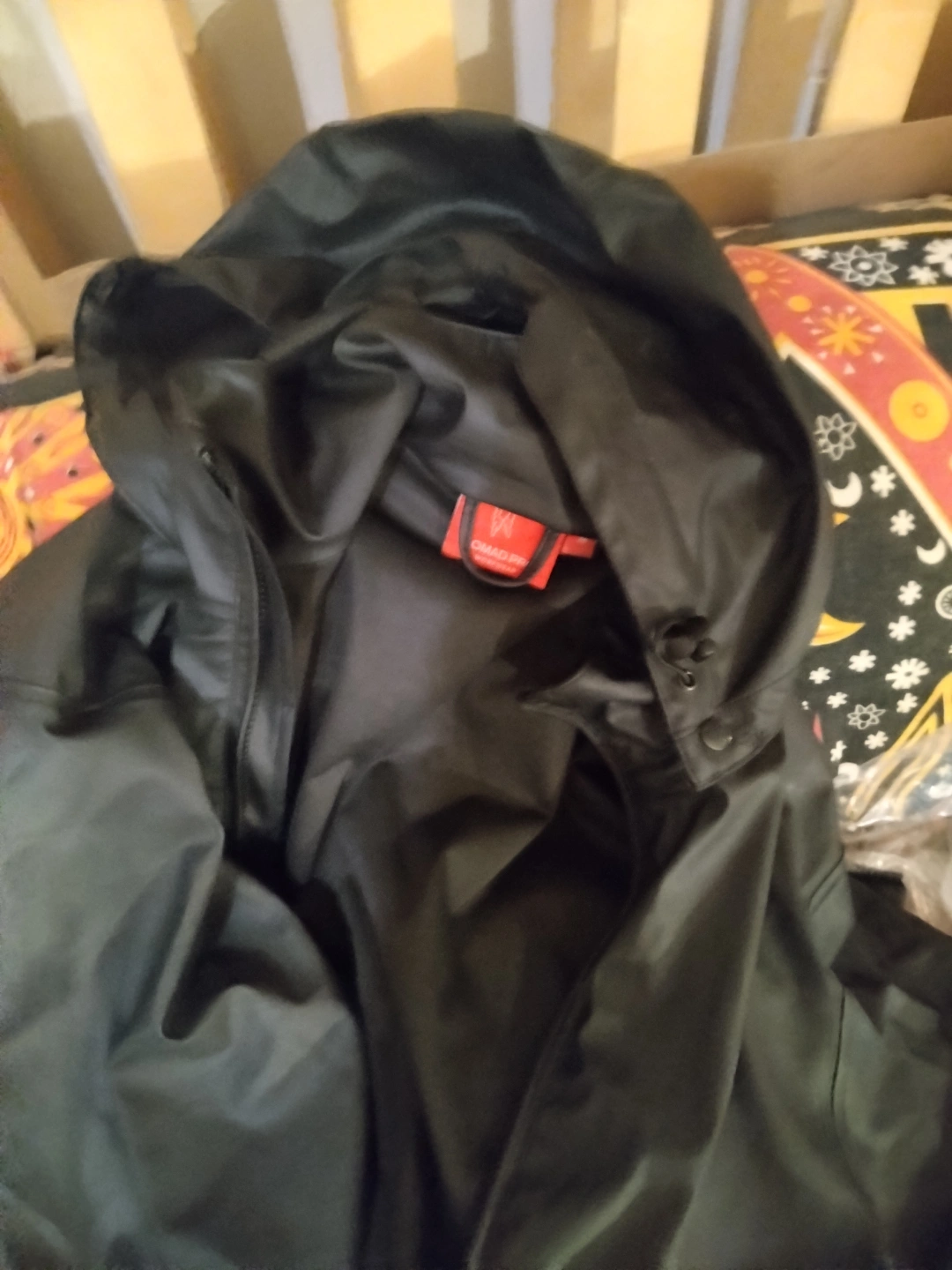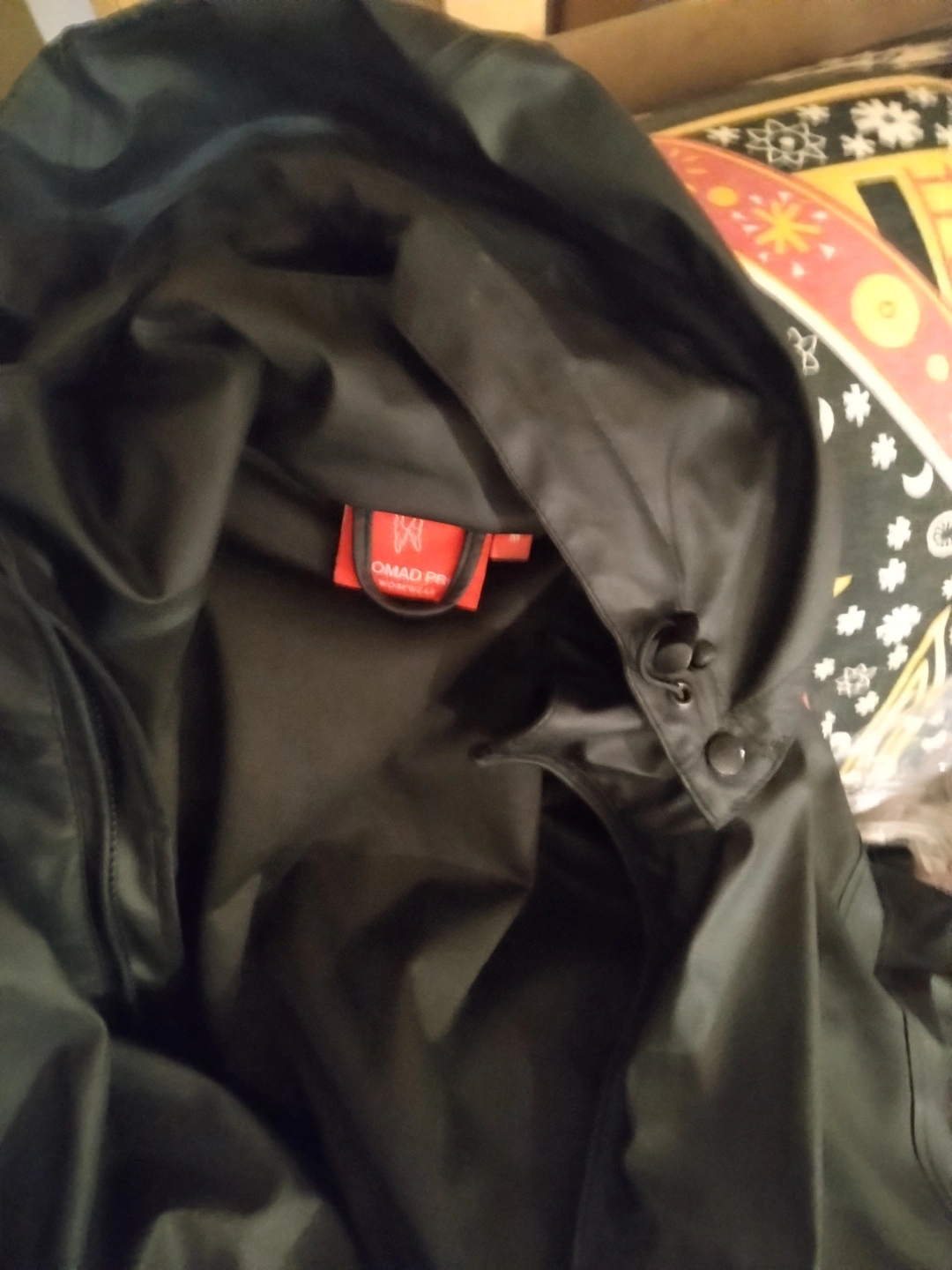 dark greenhooded jacket. Zipper closure. Small logo on sleeve. Very lightweight and breathable. serious offers only please. thank you.