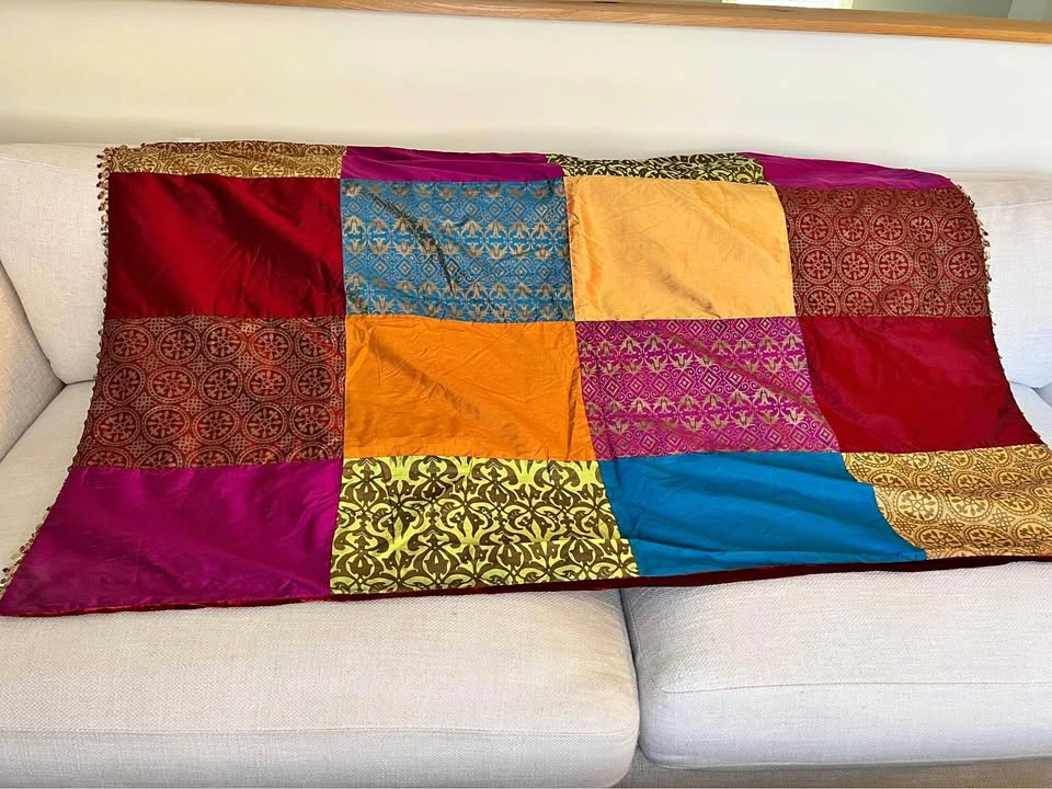 Patchwork Throw or decorative wall piece. Has velvet backing and beading on both sides Size: width 147cm - height: 98cm