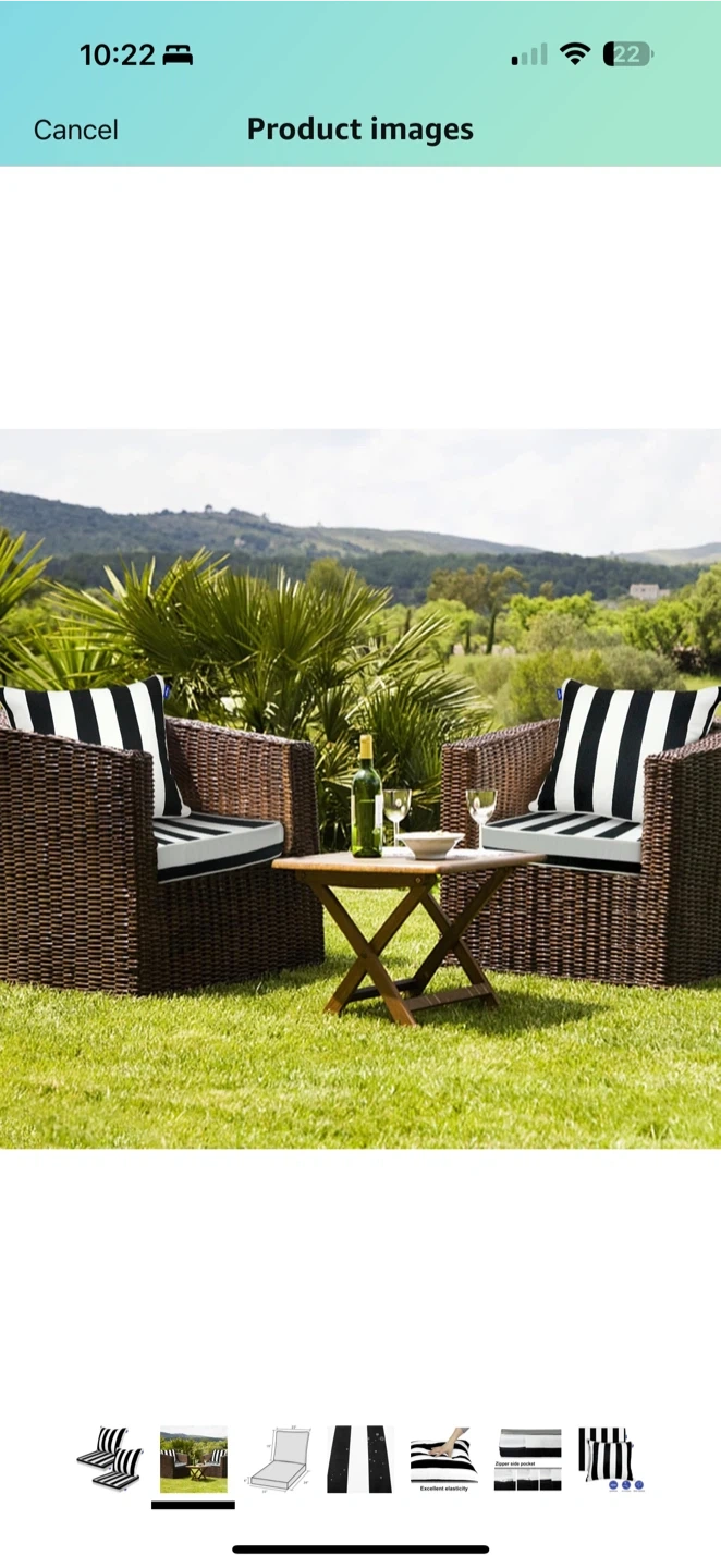 Patio Chair Cushion Set – Black & White Stripe (2-Pack) ☀️ Brand new, never used. Stylish outdoor cushion set — perfect for patio chairs, garden furniture, or balcony seating. Made from UV-resistant, water-repellent, and breathable fabric for long-lasting outdoor comfort. 📦 Set includes: • 2 seat cushions (22” x 24” x 4”) • 2 back cushions (23” x 19”) ✅ Removable covers with zippers ✅ Soft yet firm support foam ✅ Elegant black-and-white stripe design — fits any outdoor décor 💲 Price: $80 (Amazon price: $115) 📍 Pickup in Waterloo