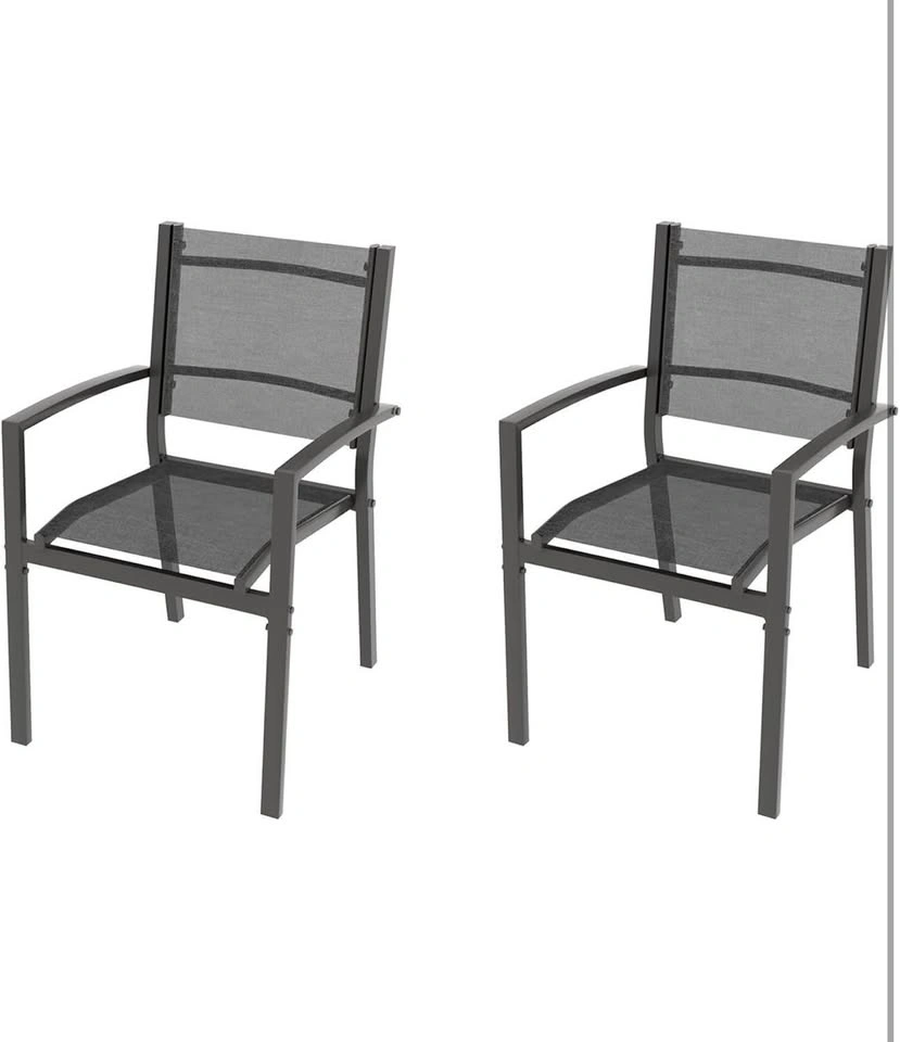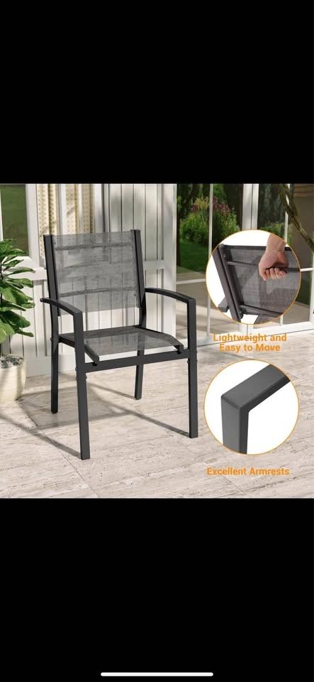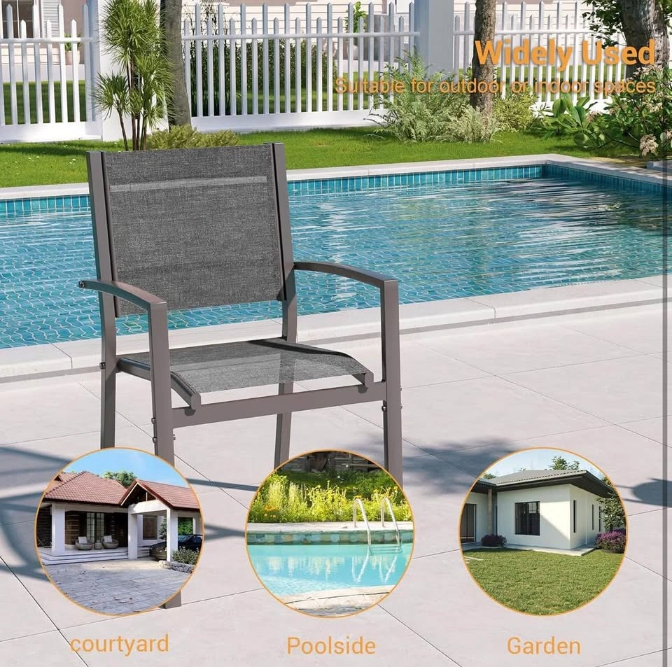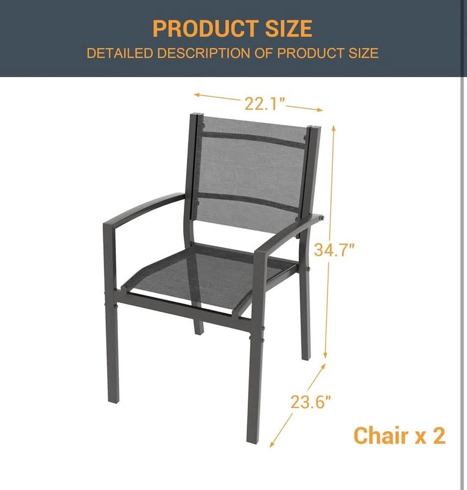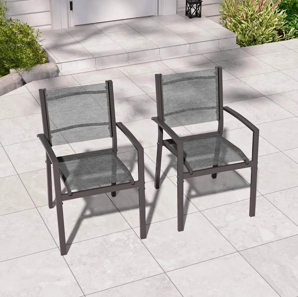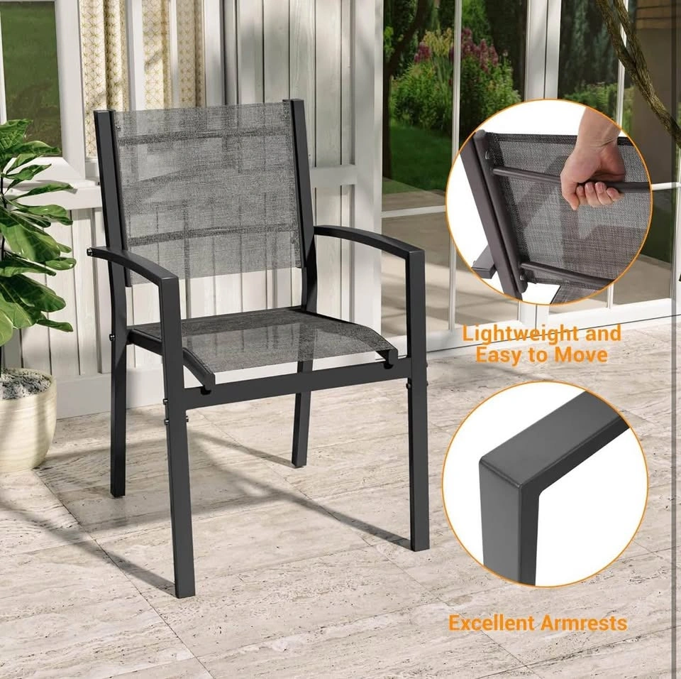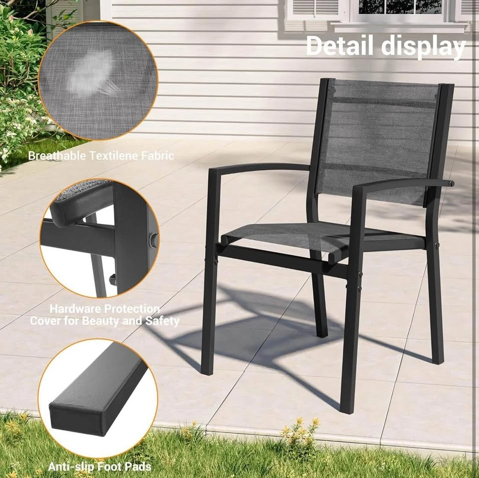 37Patio Dining Chairs Set of 2, Padded Textilene Patio Chairs Outdoor Dining Chairs, Textilene Patio Furniture Chair with Armrest & Black Metal Frame for Lawn Garden Backyard