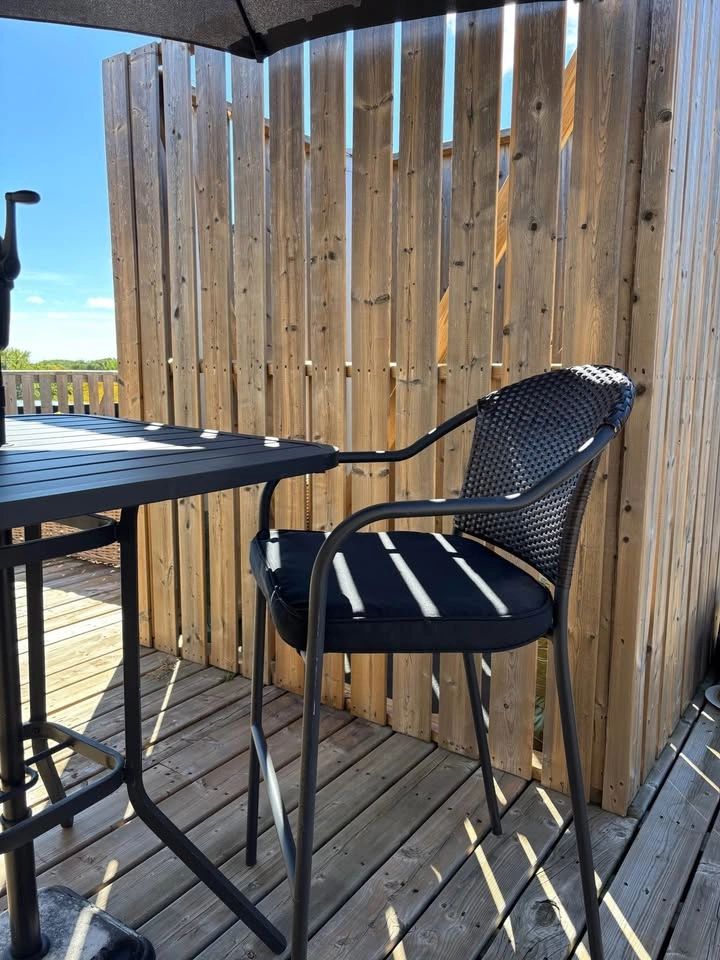 Hi there! I am selling this bistro set as I am moving across country & it can’t come with me. Purchased this recently & only used for a season. Set includes: 1 bar height table 2 bar height stools with cushions Umbrella with stand and base Selling as a set for $300 or best offer!