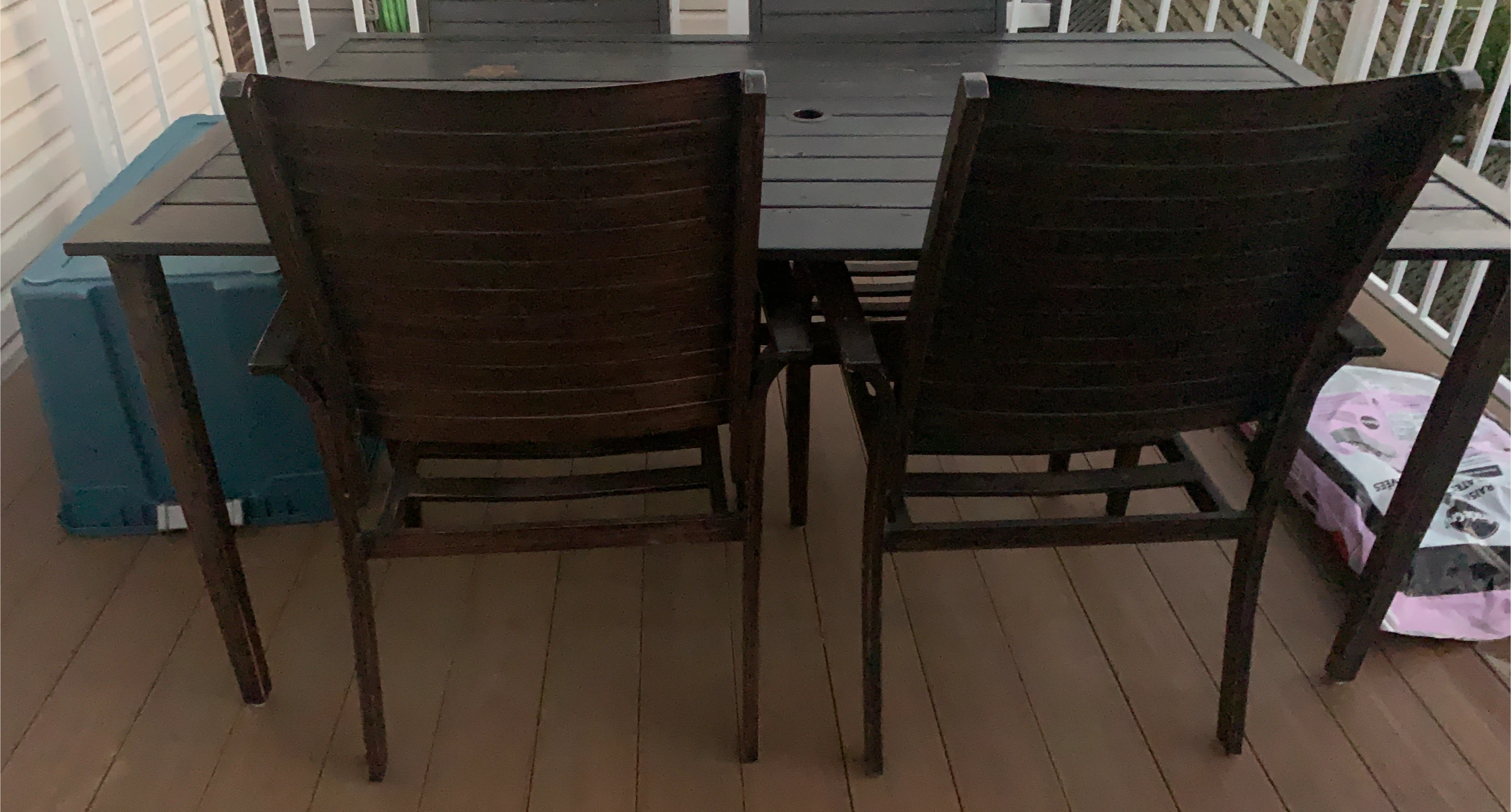 10Selling a patio table and chairs set. It's in good condition and perfect for enjoying the outdoors on your deck or patio. The set includes a table and chairs, ready for your summer gatherings