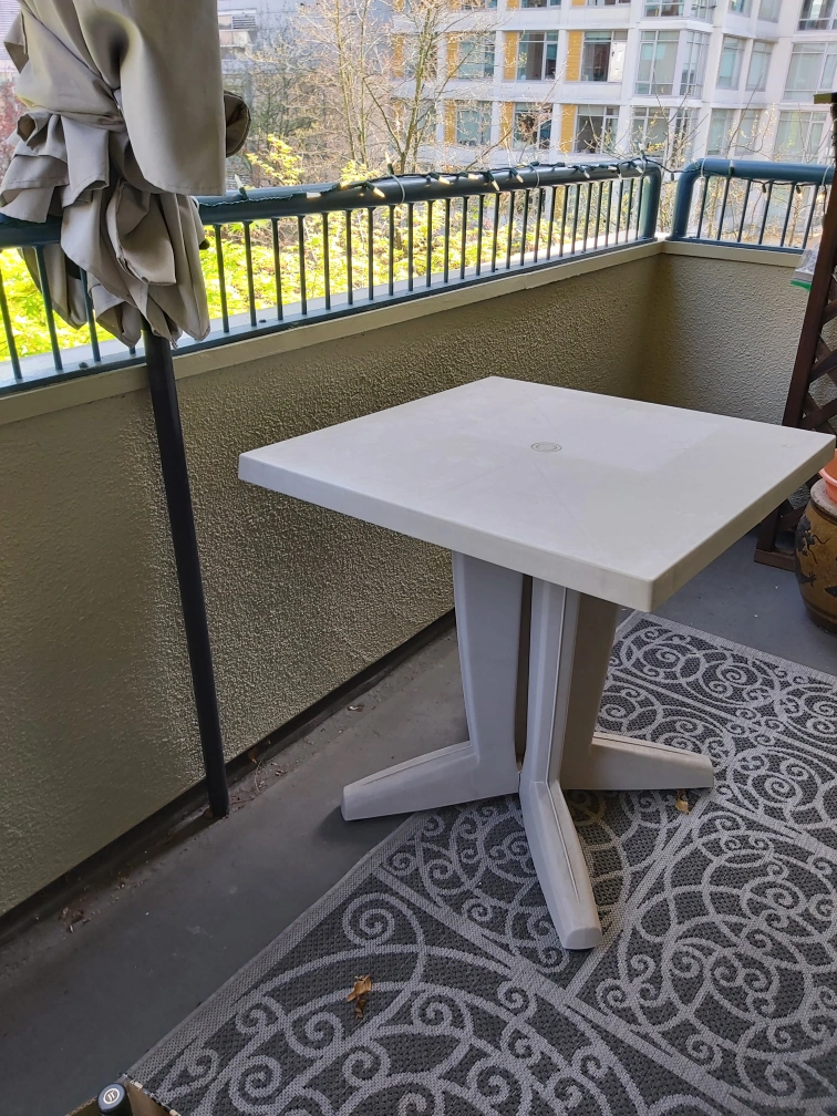 74Pretty good condition. Can easily be dismantled for easy transport. Leveling dials under each leg. Only 1 flaw. When swiveling top onto base, has 3 small tabs to hold each corner tight. It's missing 1 tab on 1 corner. This can be worked around to make stable. Great for elevating plants off the floor. Let's discuss! ๐