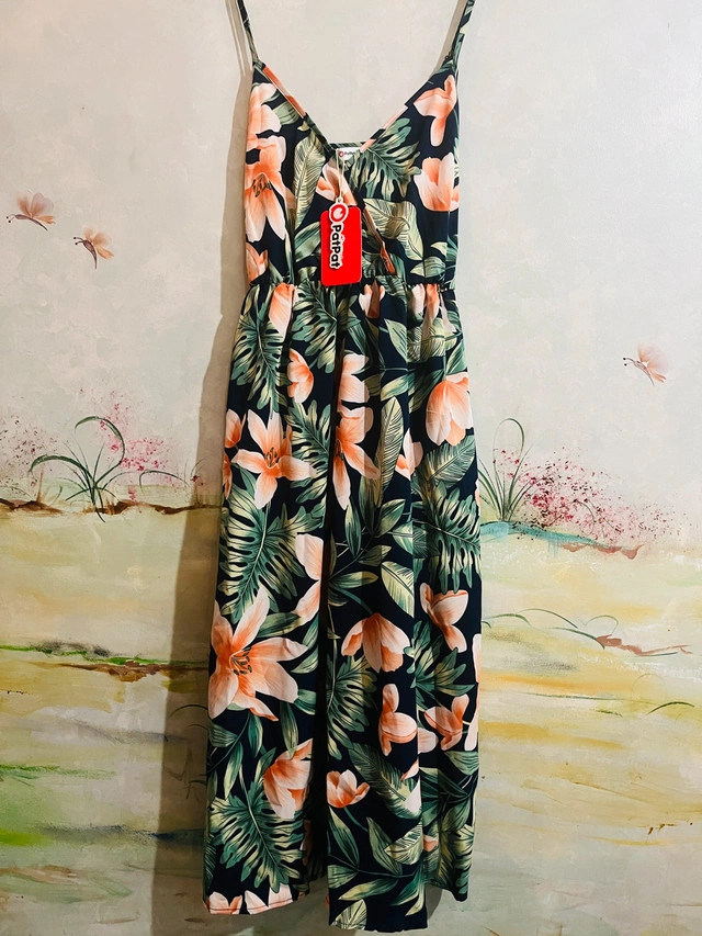 118This PatPat dress is brand new with tags, featuring a vibrant floral print on a navy background. Perfect for a casual outing or a summer day, it's a stylish and comfortable addition to any wardrobe. The dress is new, ensuring it's in pristine condition. Key Features: - Brand: PatPat - Condition: New with tags - Design: Floral print on navy - Style: Casual, summer dress pick up is in Brampton near Sheridan College.