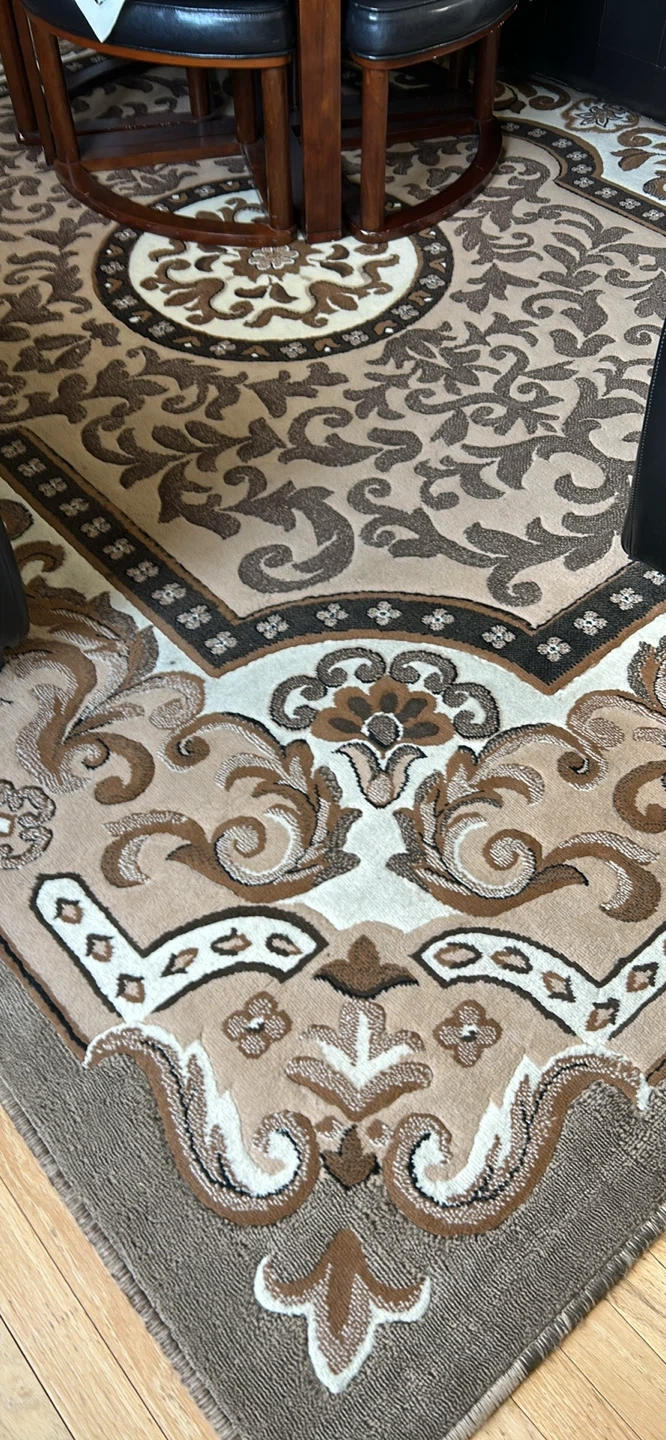 124Selling a patterned area rug with a beige and brown colour scheme. It has a floral design and would look great in any room