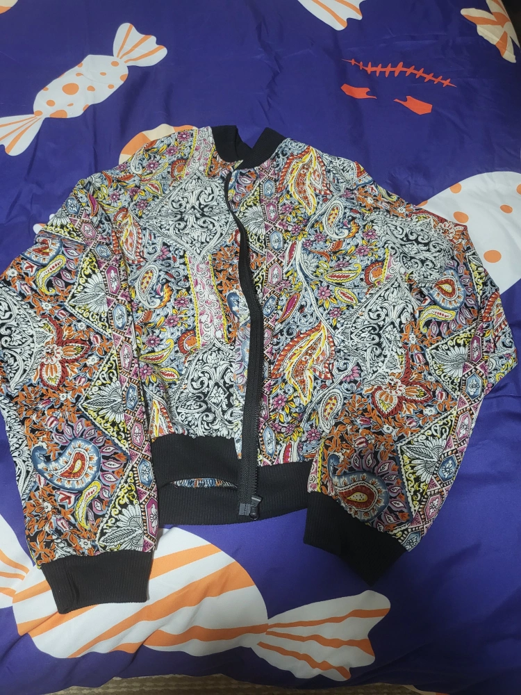 Selling a stylish bomber jacket with a unique, colourful pattern! It's in great condition and perfect for adding a pop of fun to any outfit