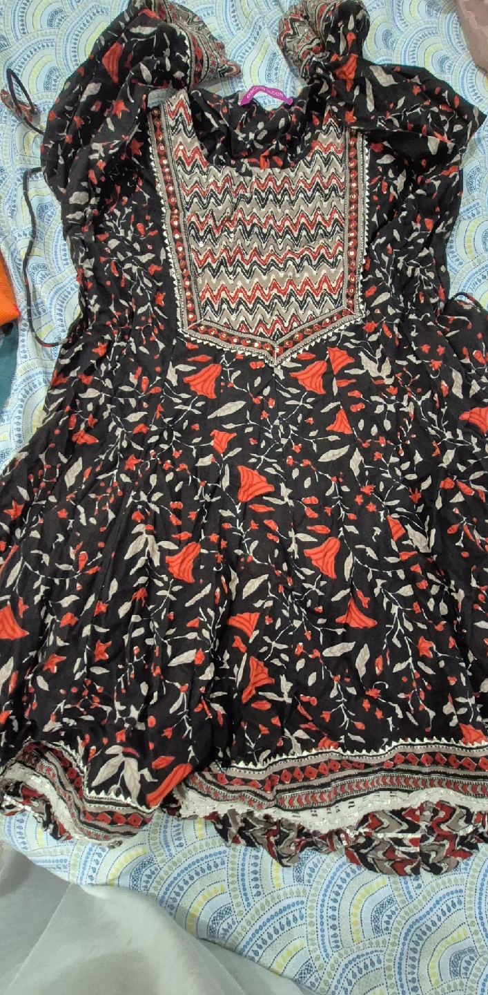 18Selling a colourful patterned dress. It features a unique design with red, black, and cream colours. Perfect for casual wear or dressing up for an event. The dress is in great condition and ready for a new home