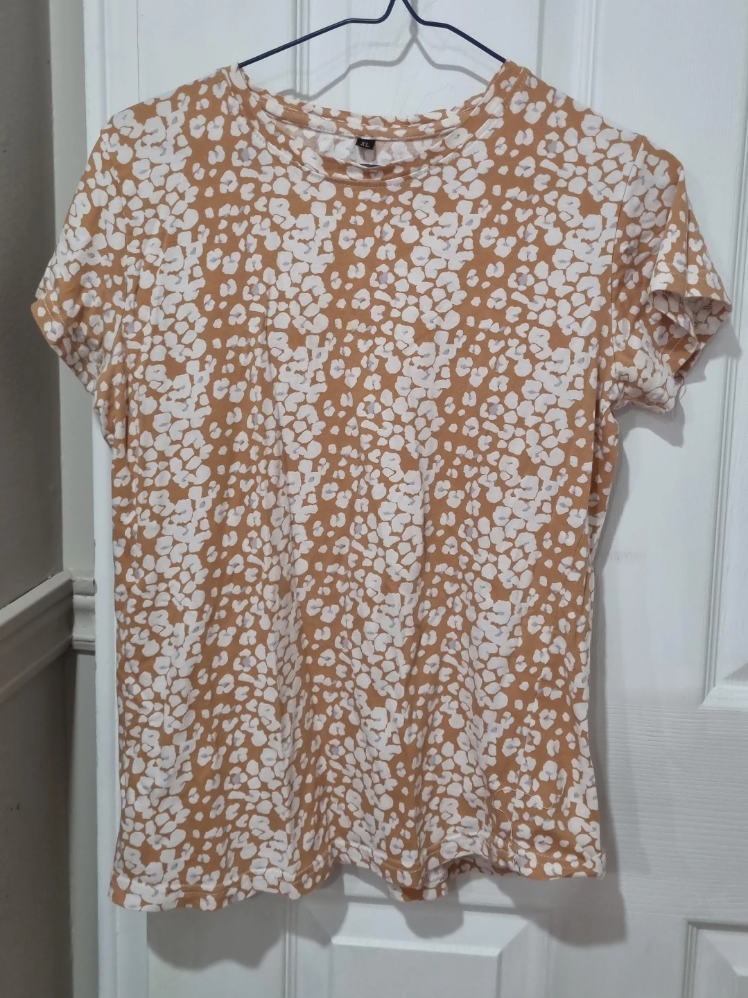 25This is a cute t-shirt with a unique pattern in size XL. flowy material