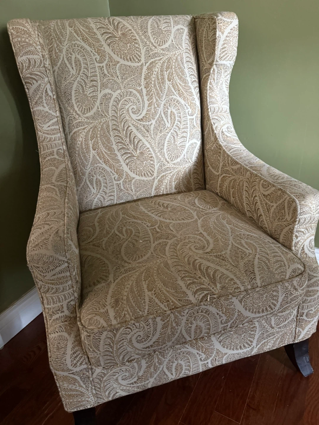 60Selling a comfortable wingback armchairs with a beautiful patterned design! It's in great condition and would be a lovely addition to any living room or reading nook. The chairs have a classic shape and neutral colour, making it easy to match with your existing decor