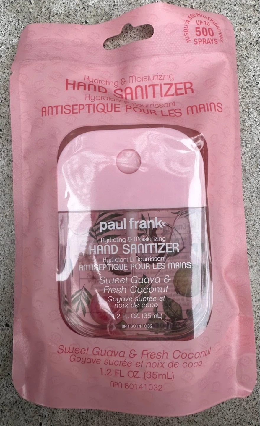 30I'm selling Paul Frank hand sanitizers. They are hydrating and moisturizing and come in a 35mL bottle. Each sanitizer has up to 500 sprays. Available scents are: - Black Plum & Vanilla - Cucumber & Melon - Sweet Guava & Fresh Coconut - Violet Orchid & Sandalwood