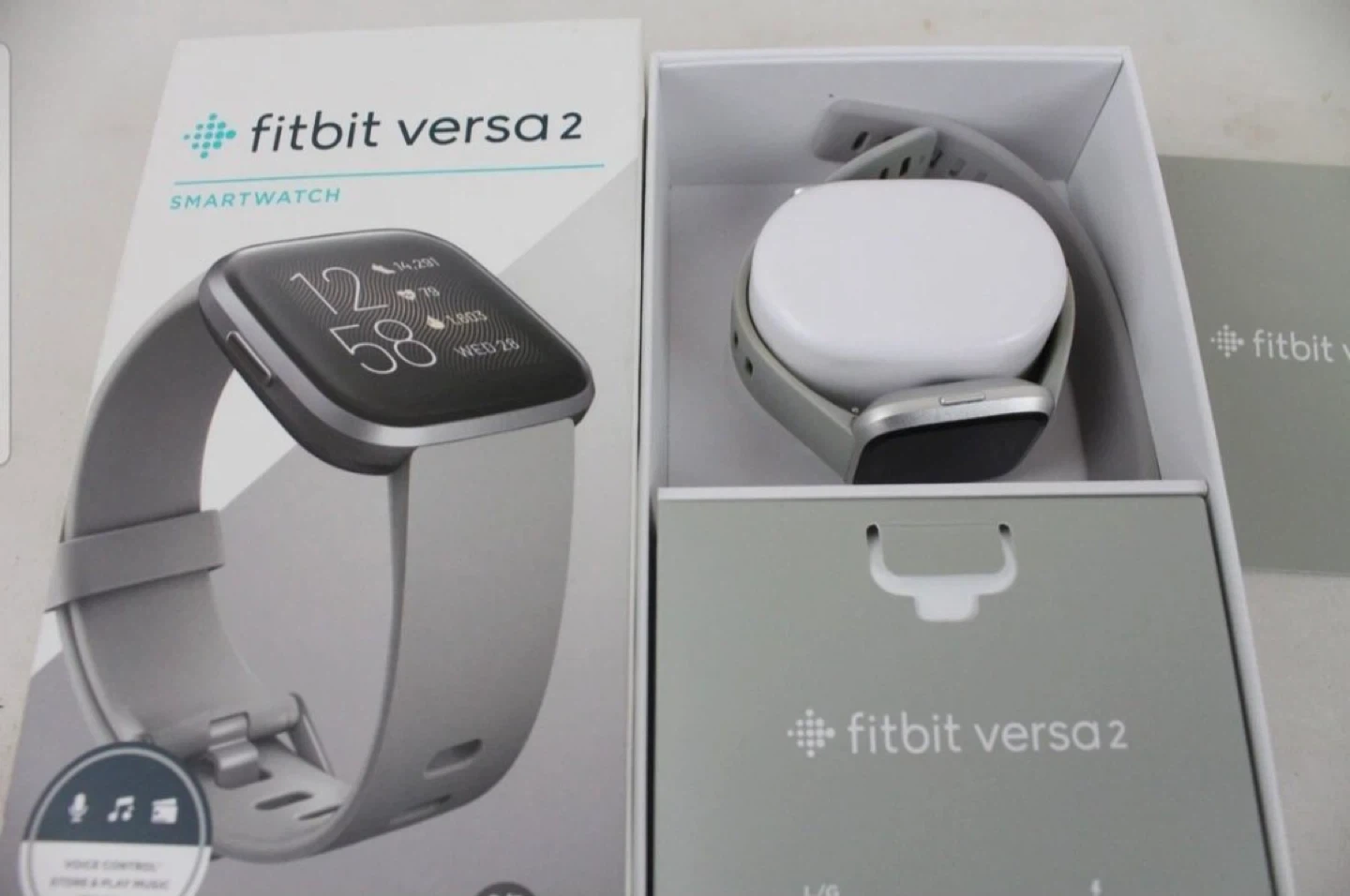 Like new Fitbit Versa 2 smartwatch. Comes with original box, band, and charger.