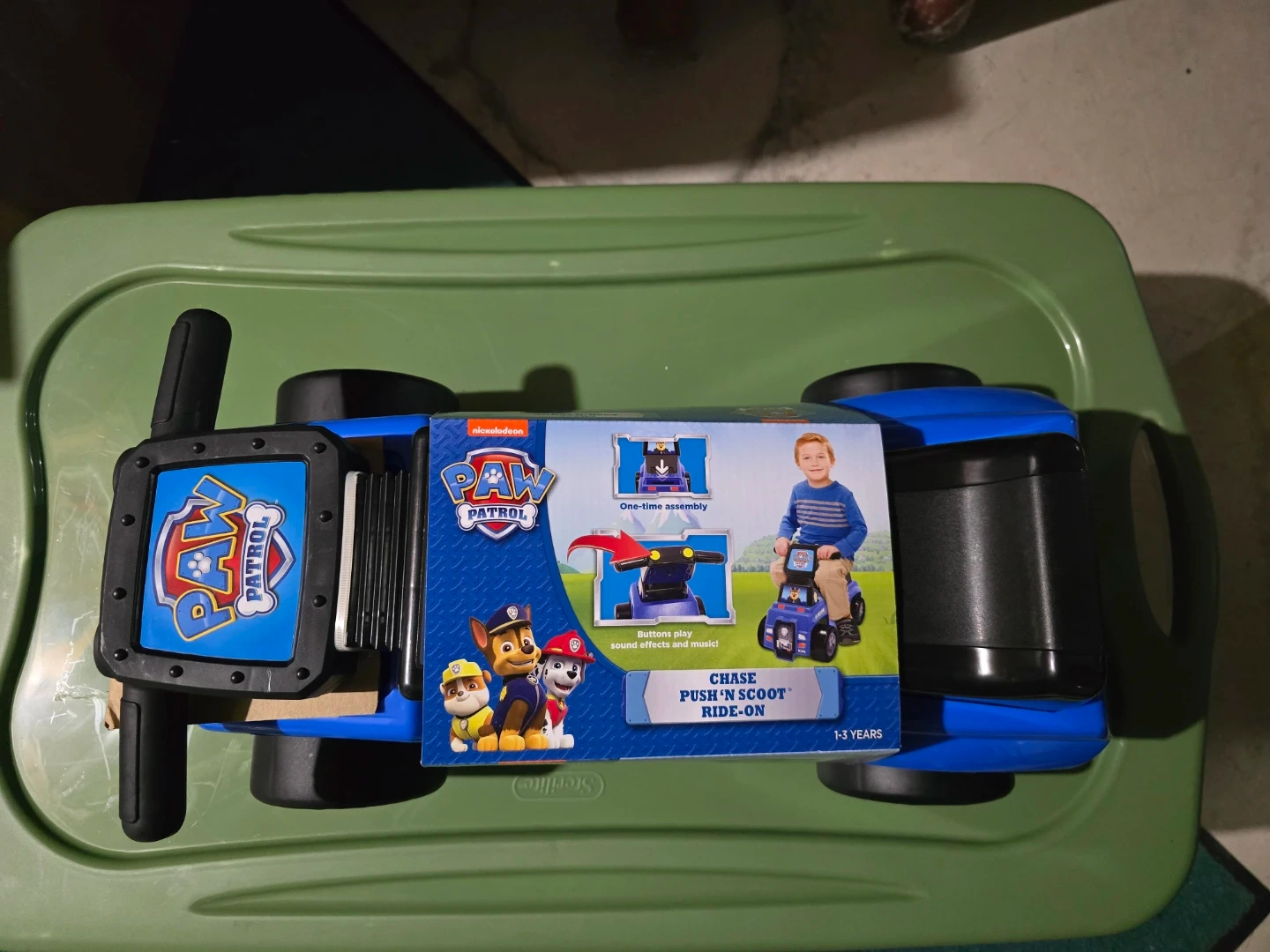 60Selling a Paw Patrol Chase Push 'N Scoot Ride-On! It's in great shape and ready for a new home. Suitable for kids aged 1-3 years. It requires adult assembly and includes batteries for 'try me' purposes. Just replace with fresh alkaline batteries when needed