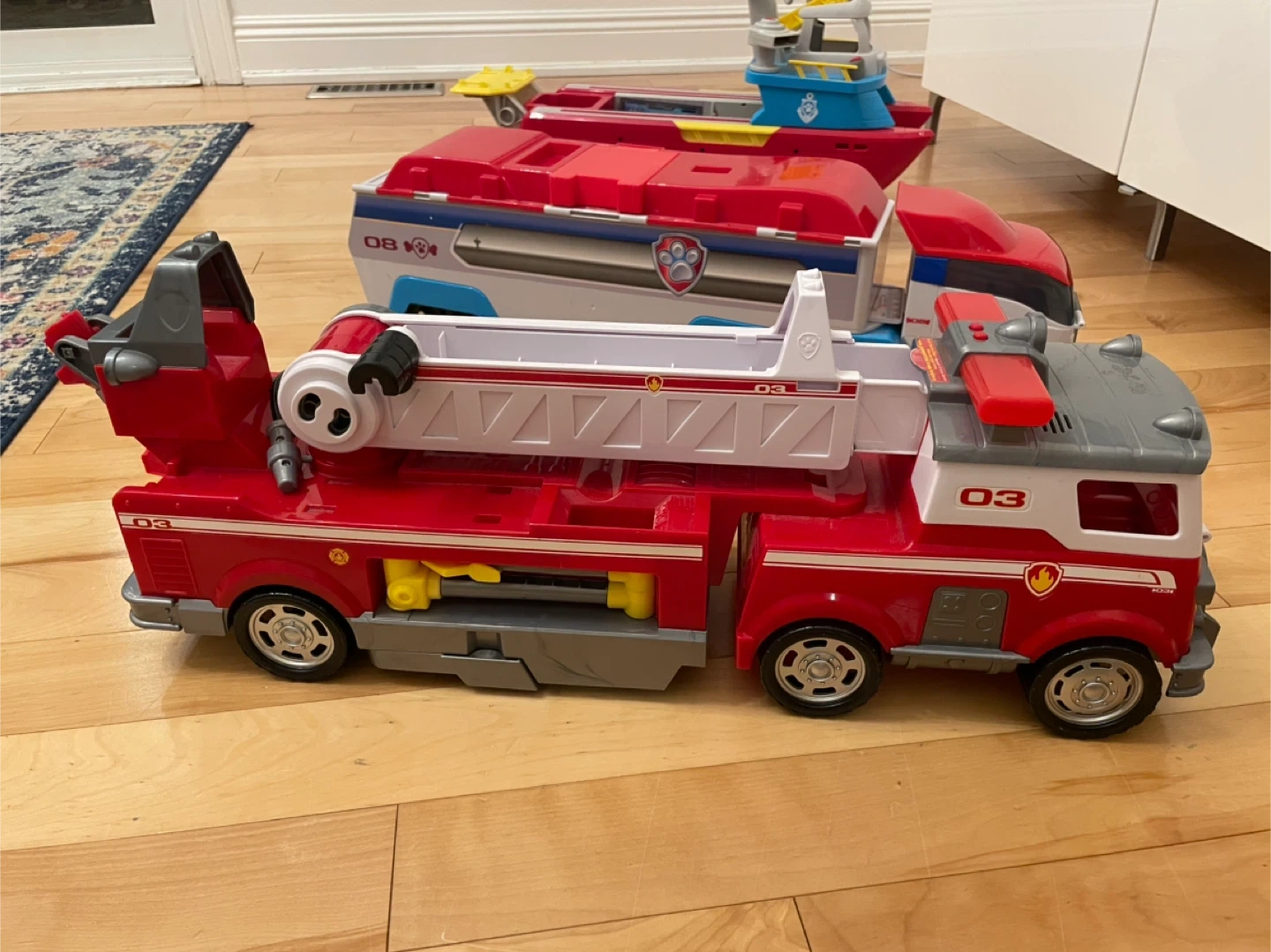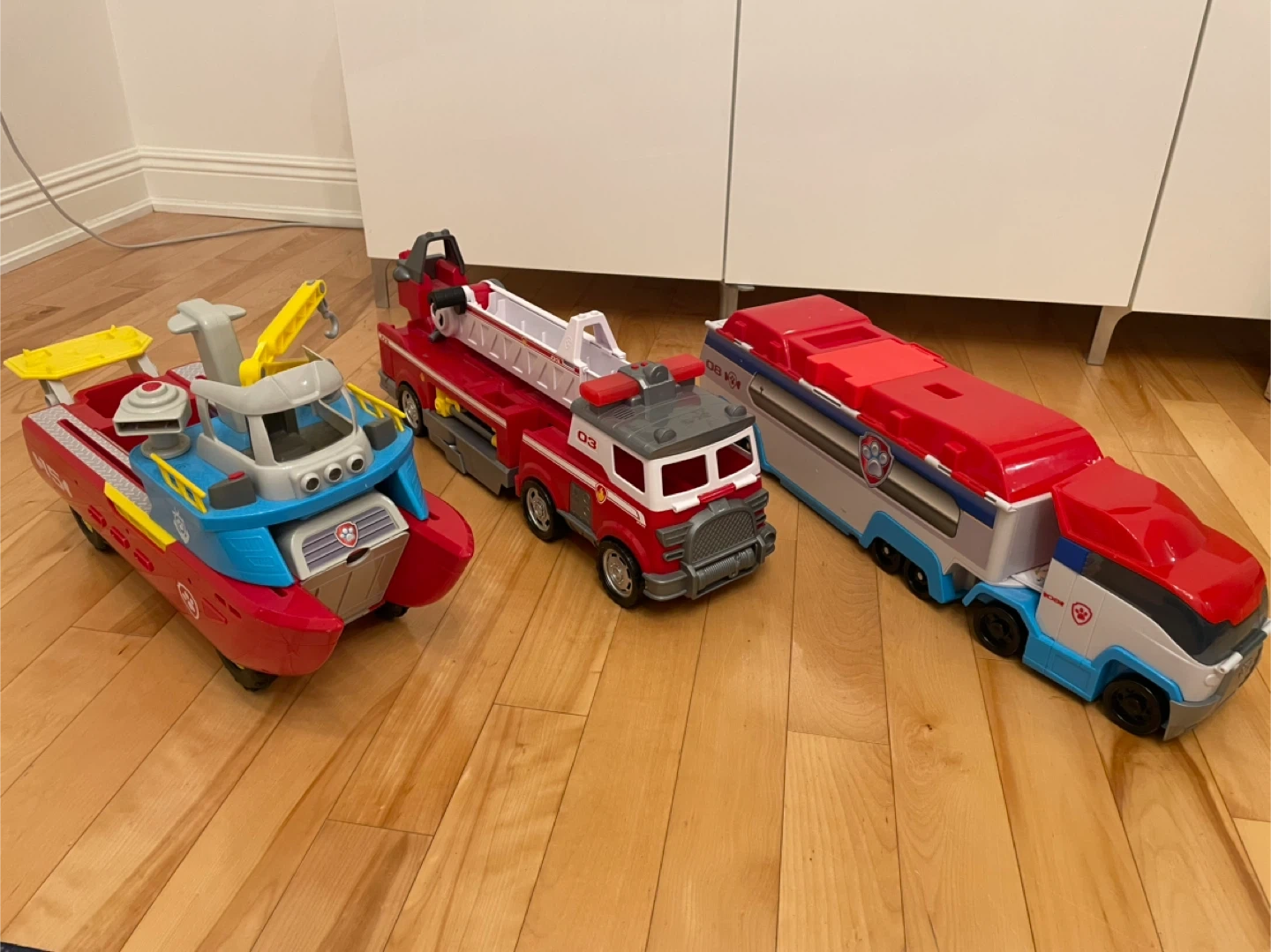 18Selling a set of Paw Patrol vehicles. Includes the Paw Patroller truck, a firetruck, and the Sea Patroller. All in good condition and ready for a new home!