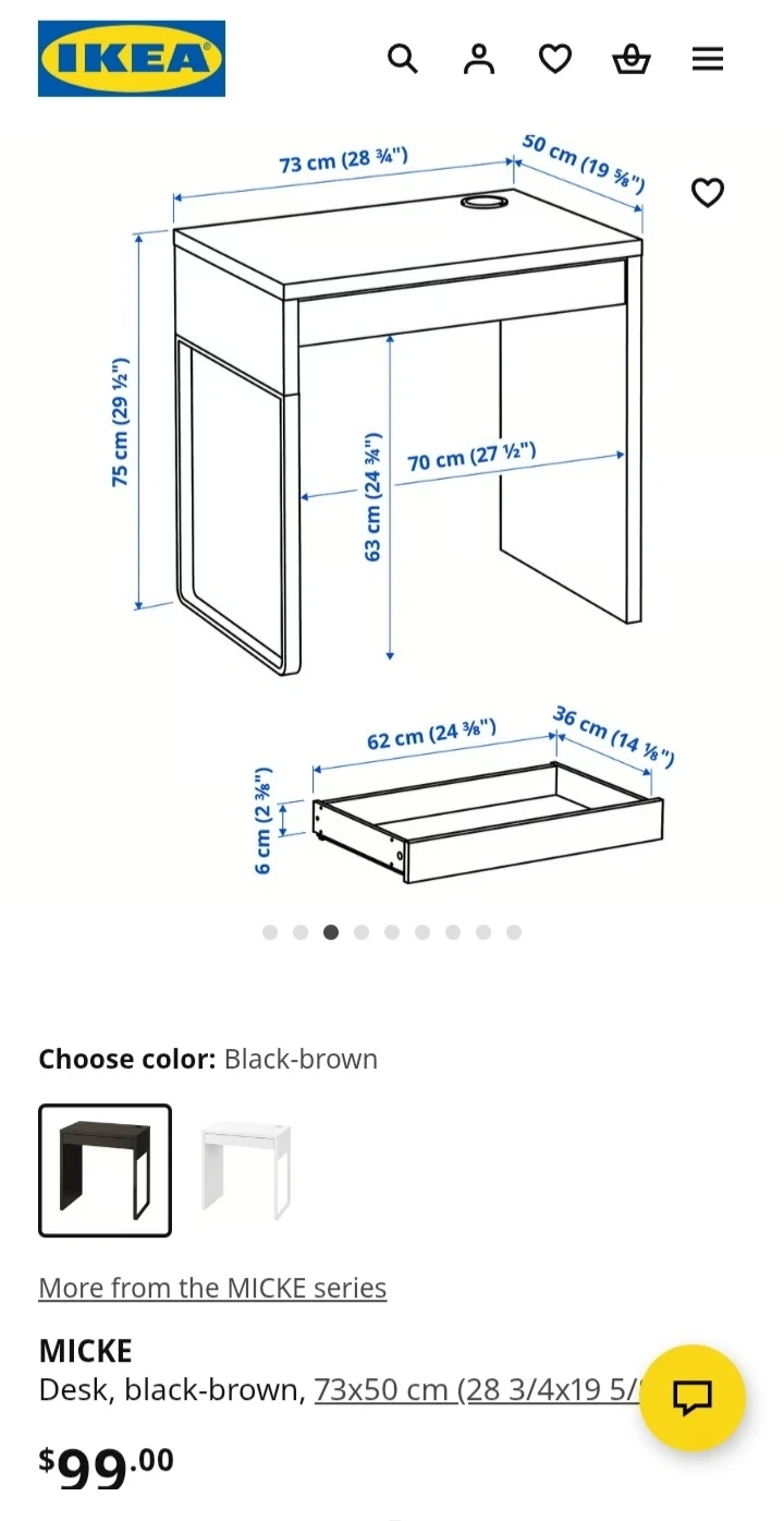 Ikea Micke Desk, black-brown, 73x50 cm (28 3/4x19 5/8 ")