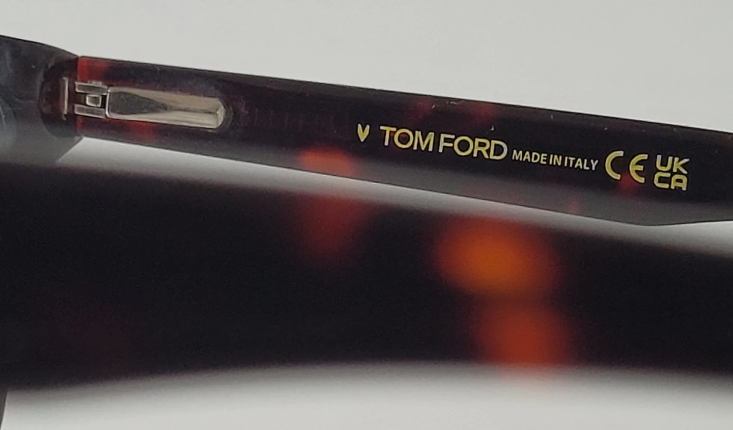 Tortoiseshell Tom Ford eyeglasses with a classic square frame. Includes the original green protective case. Made in Italy.