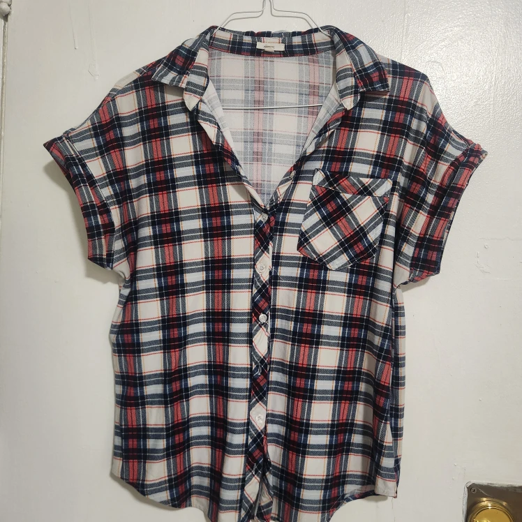 Here's an Ardene plaid shirt in size medium! It's in great condition and perfect for a casual look