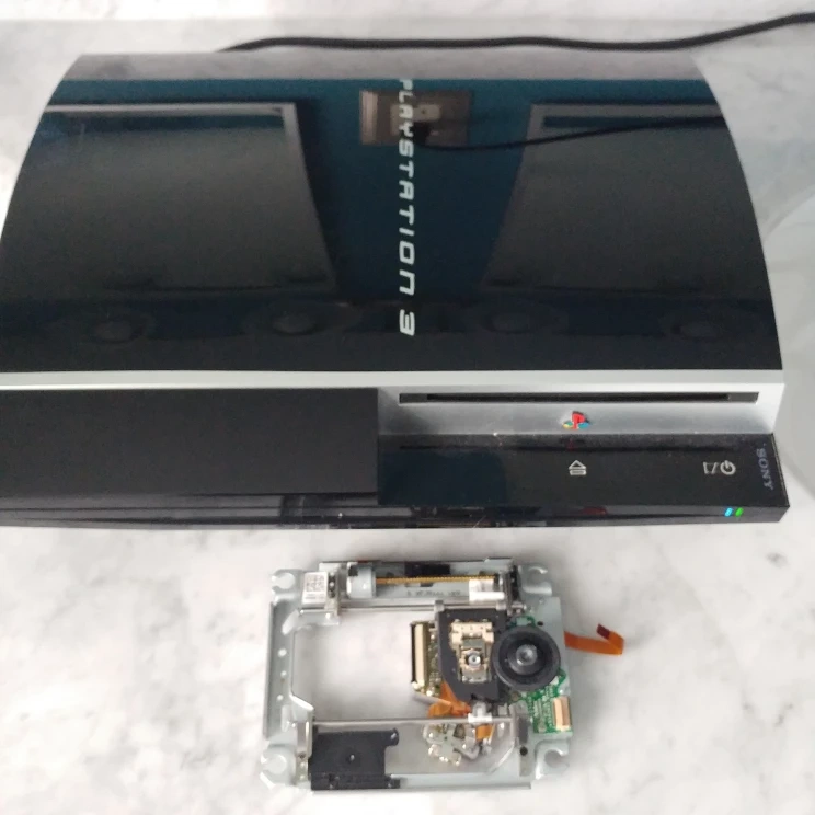 PlayStation 3 console for parts/repair. It has power but will not read or take in discs. Console only but Includes a spare laser assembly, which is untested.