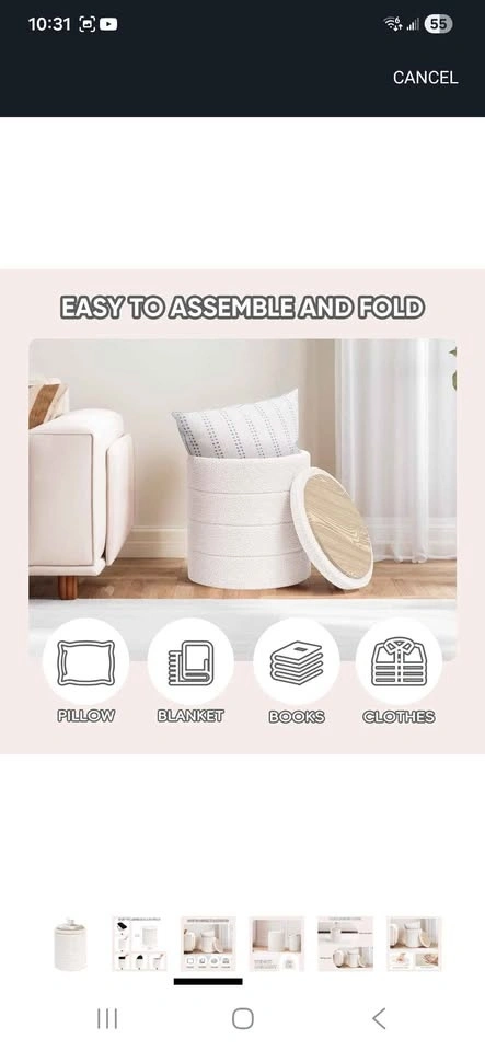 Buy & SellRound Ottoman with Storage NewRound Ottoman with Storage New$35Brand new folding storage ottoman. Available in cream and grey. Pet-free and smoke-free home.WHERE TO MEETCheck LocationView MapSELLERberylHuron S422 reviews0 chats·0 favorites·3 viewsSEND CHAT TO SELLERHi beryl! I’m interested in your listing.Hi beryl! I’m interested in your listing.Get the Karrot app to chatSign In to chat