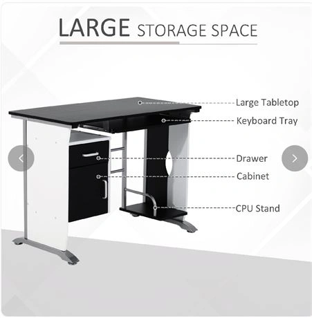 Ample Storage: This pc desk with slide-out keyboard tray has an enough tabletop for laptops or monitors and includes CPU stand, drawer and cabinet, provides enough storage space for a CPU, books, decoration and other office essentials.