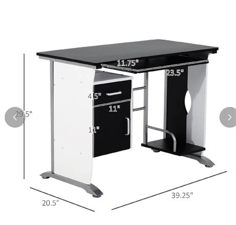 Computer Table Information: Overall Dimension: 39.4" x 20.5" x 29.5", 9.3"L x 10.2"D x 3.1"H(Internal Drawer, 11"L x 11"D x 11"H(Cabinet); Max. Load: 220.5lbs.