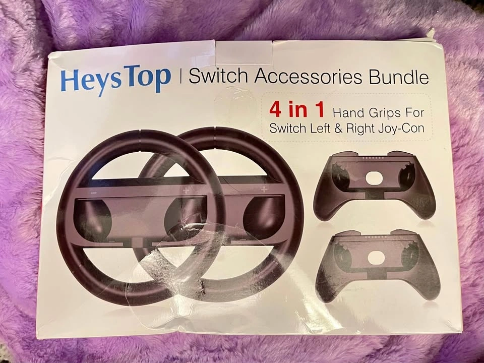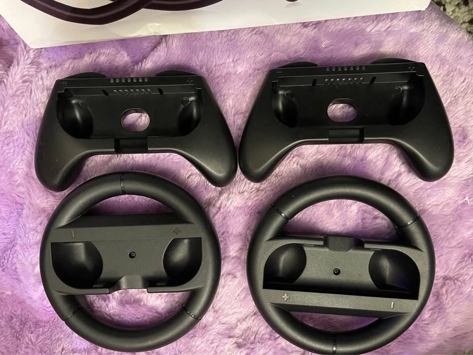 Includes Joy-Con Steering Wheel and Grip Bundle, specially designed for Switch Joy-Con. Comes in 2 versions: one for normal games and one for racing games. Easy to install, just put the Joy-Con into the steering wheel or grip. Total of 4 pieces, usable by 2 players. Made of high-quality materials. Bought but never used.