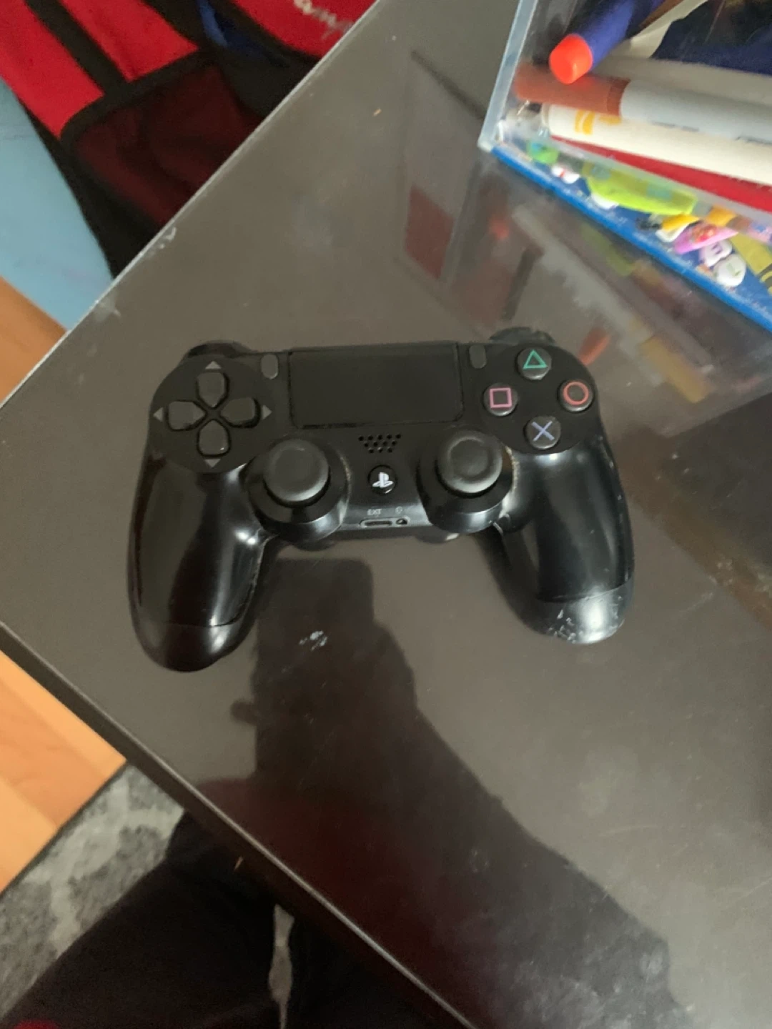 This is a black Sony DualShock 4 controller for the PlayStation 4. It's a wireless controller that connects via Bluetooth. Used for gaming. I accept cash or trades.