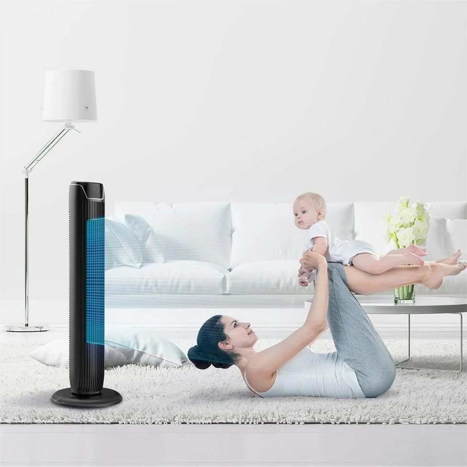 Slim 36" tower fan fits easily in any room where larger fans can't. Touchpad and remote control let you adjust settings effortlessly. 3 fan speeds, 3 wind modes, and oscillation for wide-area airflow. Programmable timer: Set auto shut-off from 1 to 7 hours for convenience and energy savings.