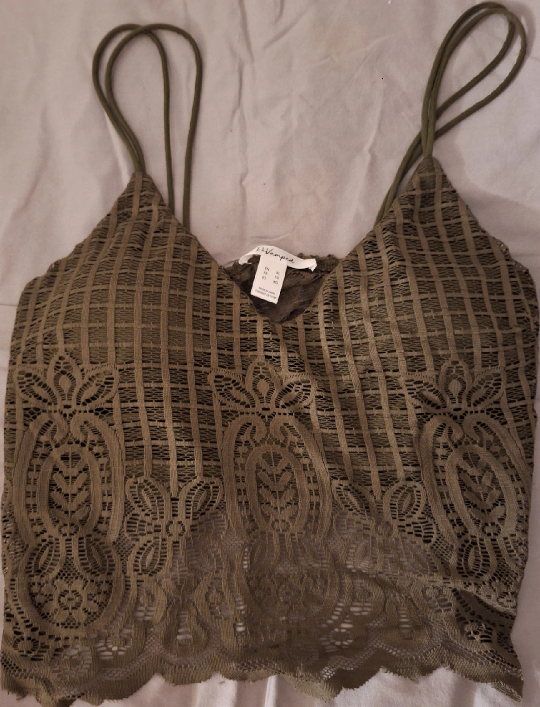 Selling a cute ReVamped bralette! It's an olive green colour with a lace overlay. Looks more green in-person. Size is XL