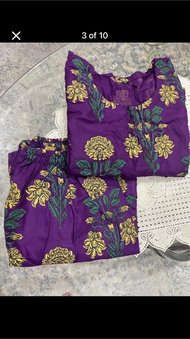 Outfit with a floral print. Comes with a top and matching bottoms. Perfect for lounging around in.