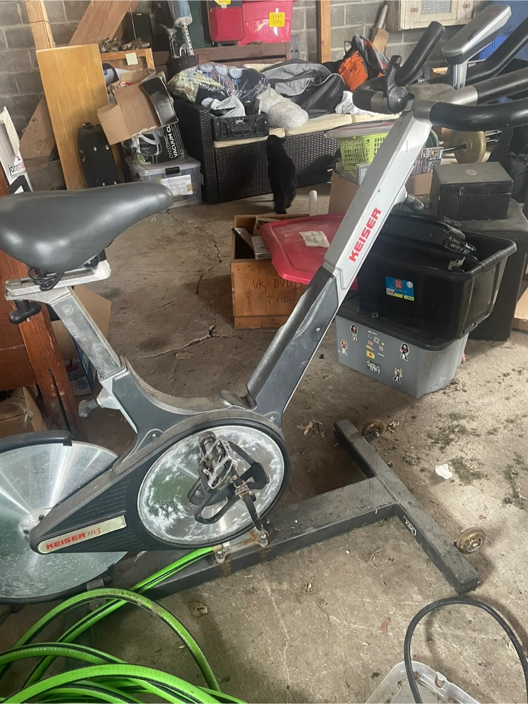 This is a Keiser M13 spin bike. It's a solid piece of equipment for your home gym. The resistance is adjusted via a lever on the frame. It's a good option for cardio workouts. Cash only buyer collects