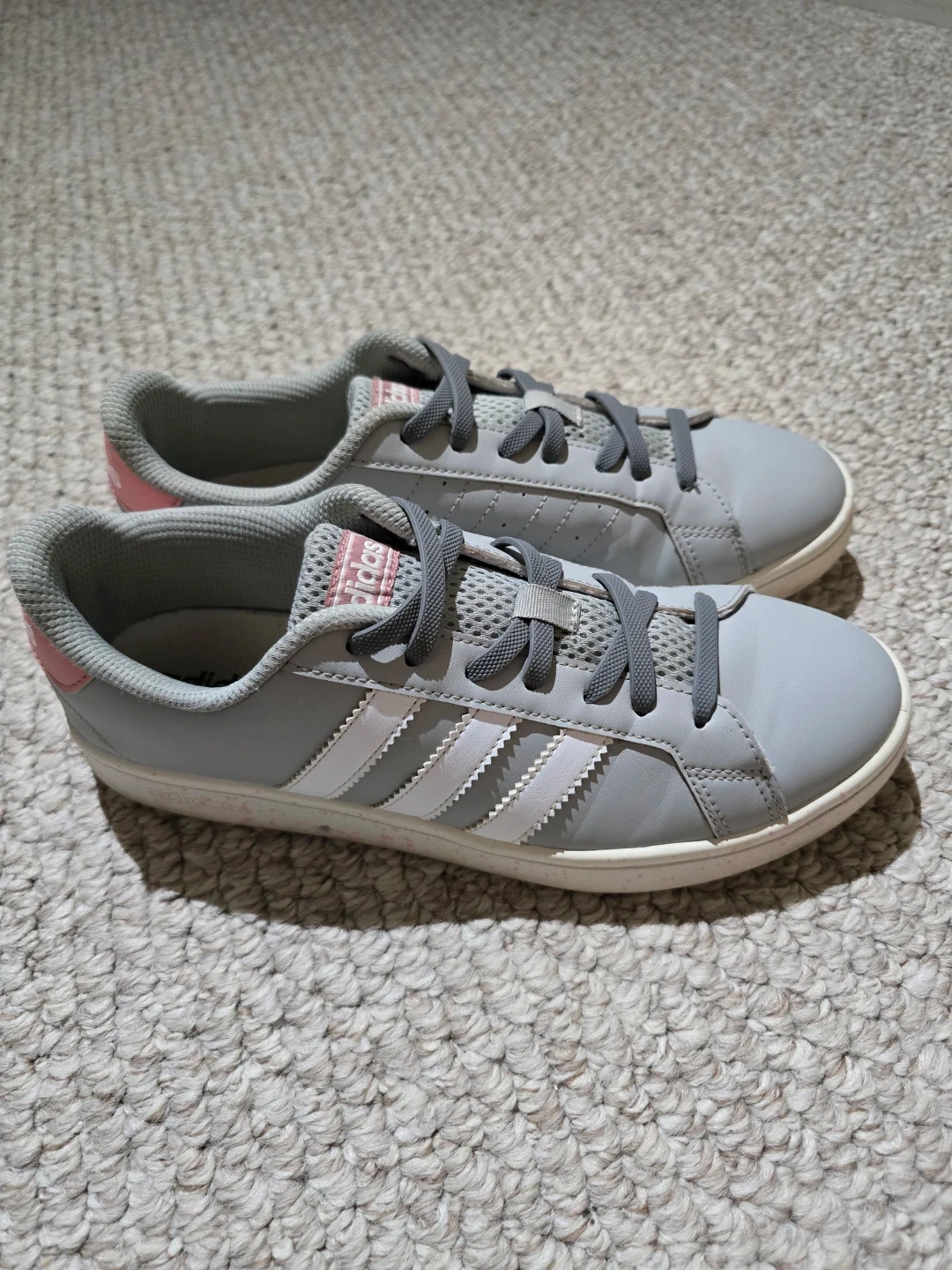 Buy & SellAdidas Women's Grey & Pink Sneakers Size 8.5Adidas Women's Grey & Pink Sneakers Size 8.5$36Grey Adidas sneakers with white stripes and pink accents. They're a women's size 8.5 US. Made in India.WHERE TO MEETMcDonald'sView MapSELLERNozarLaurentian W100 reviews0 chats·0 favorites·16 viewsSEND CHAT TO SELLERHi Nozar! I’m interested in your listing.Hi Nozar! I’m interested in your listing.Get the Karrot app to chatSign In to chat