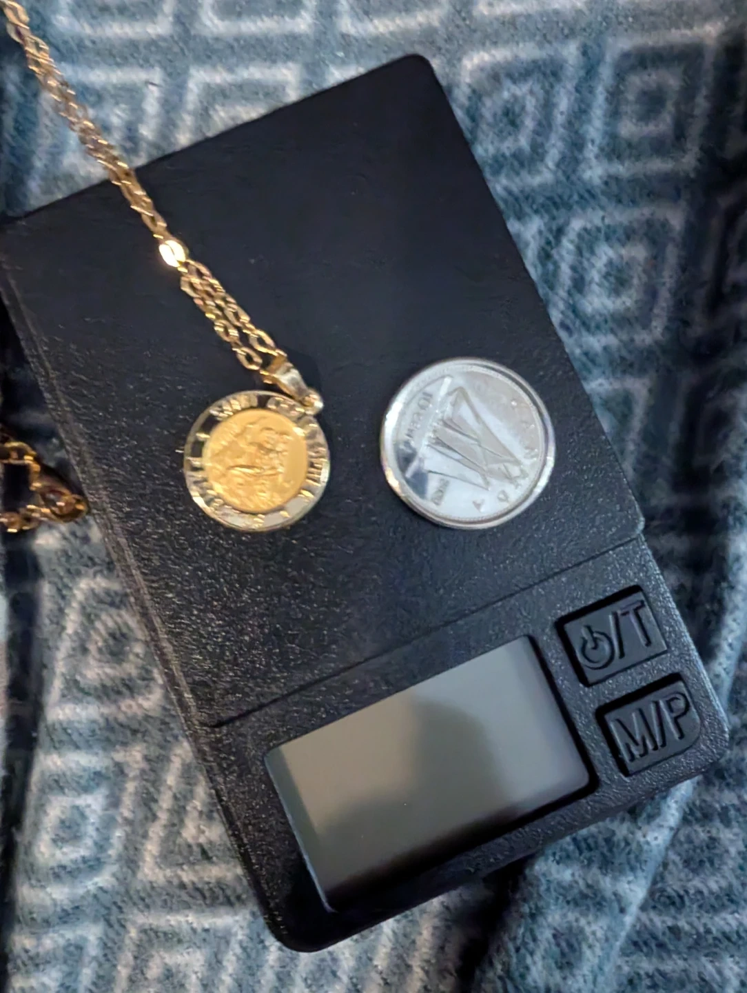 Selling a Saint Christopher 14k pendant with GHR necklace.