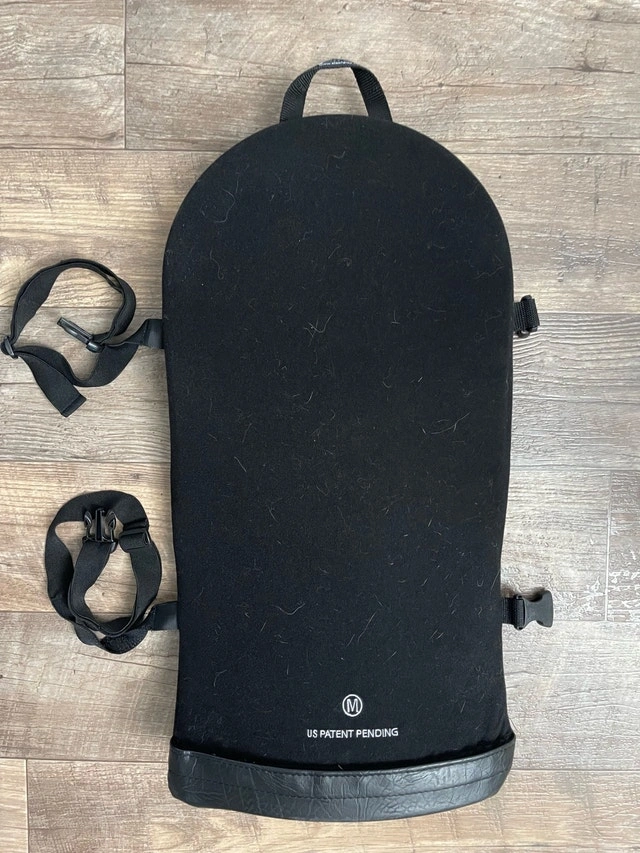 This ObusForme backrest support provides excellent lumbar support for long days at the office or in the car. It's in used condition and ready to provide comfort where you need it most. Key features include an ergonomic design for proper posture, breathable mesh fabric, and adjustable straps for a versatile fit. If the ad is still up, the backrest is available.