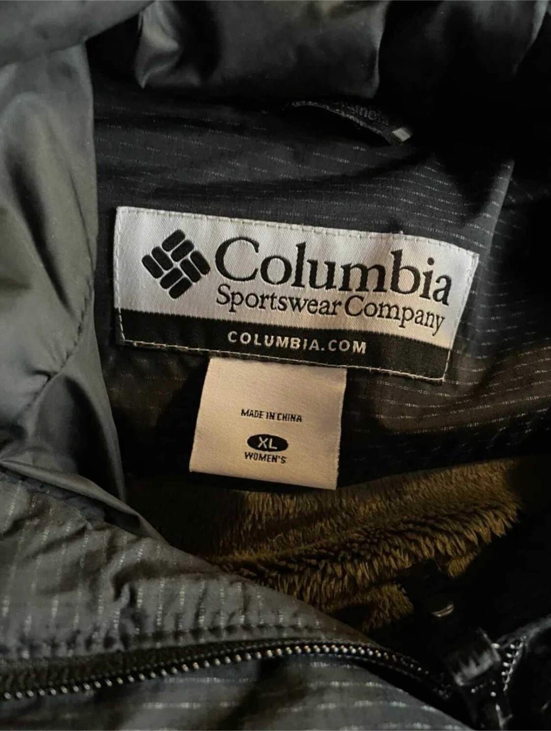 Columbia Sportswear Company women's puffer jacket. Hooded design with a patterned exterior. Size XL.
