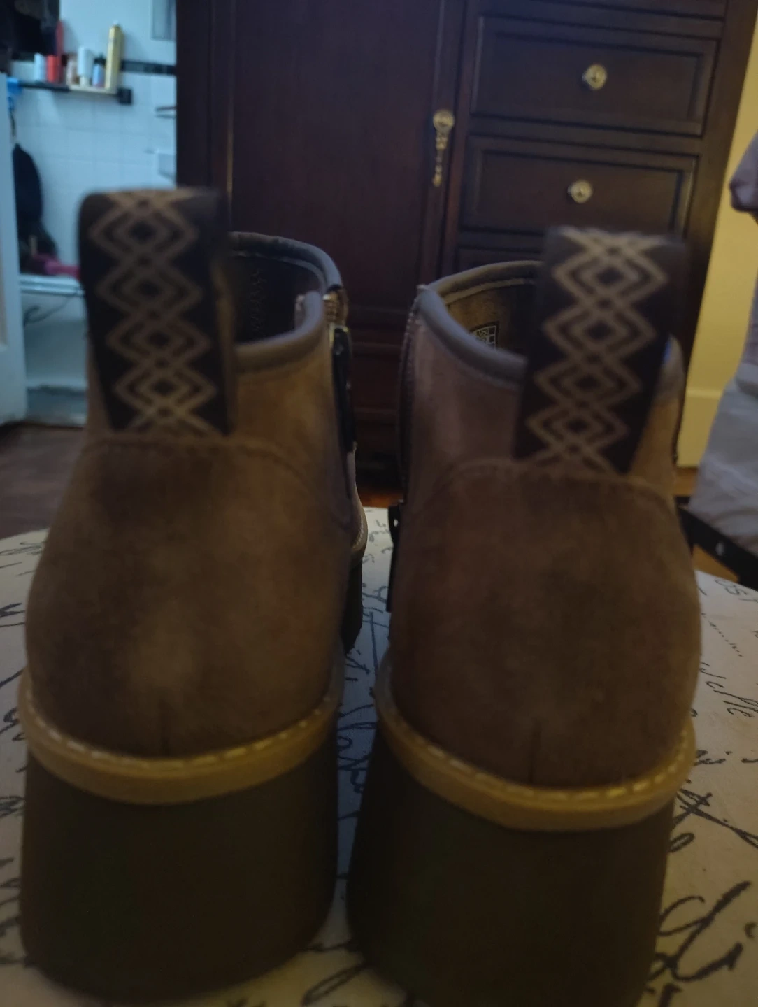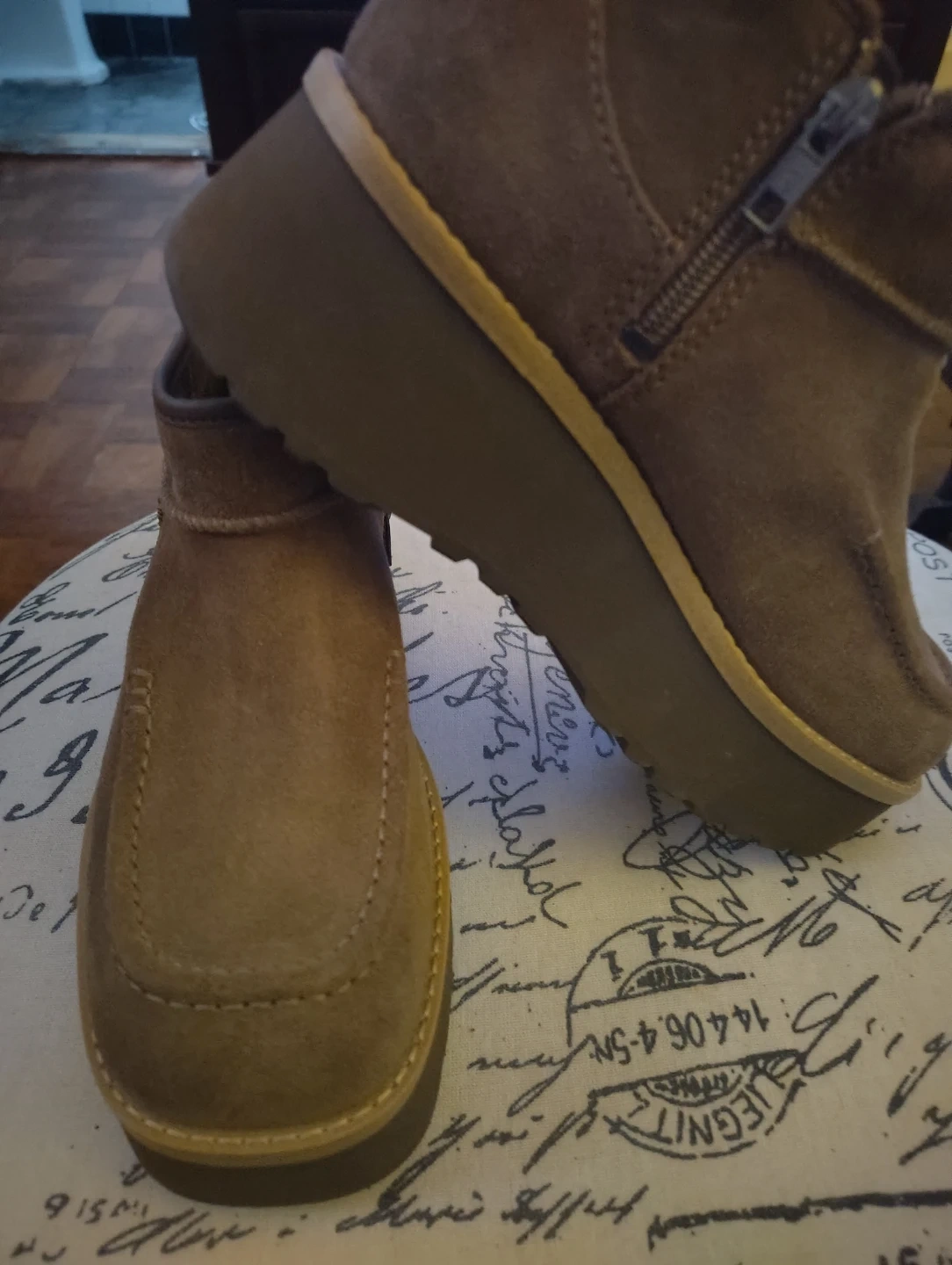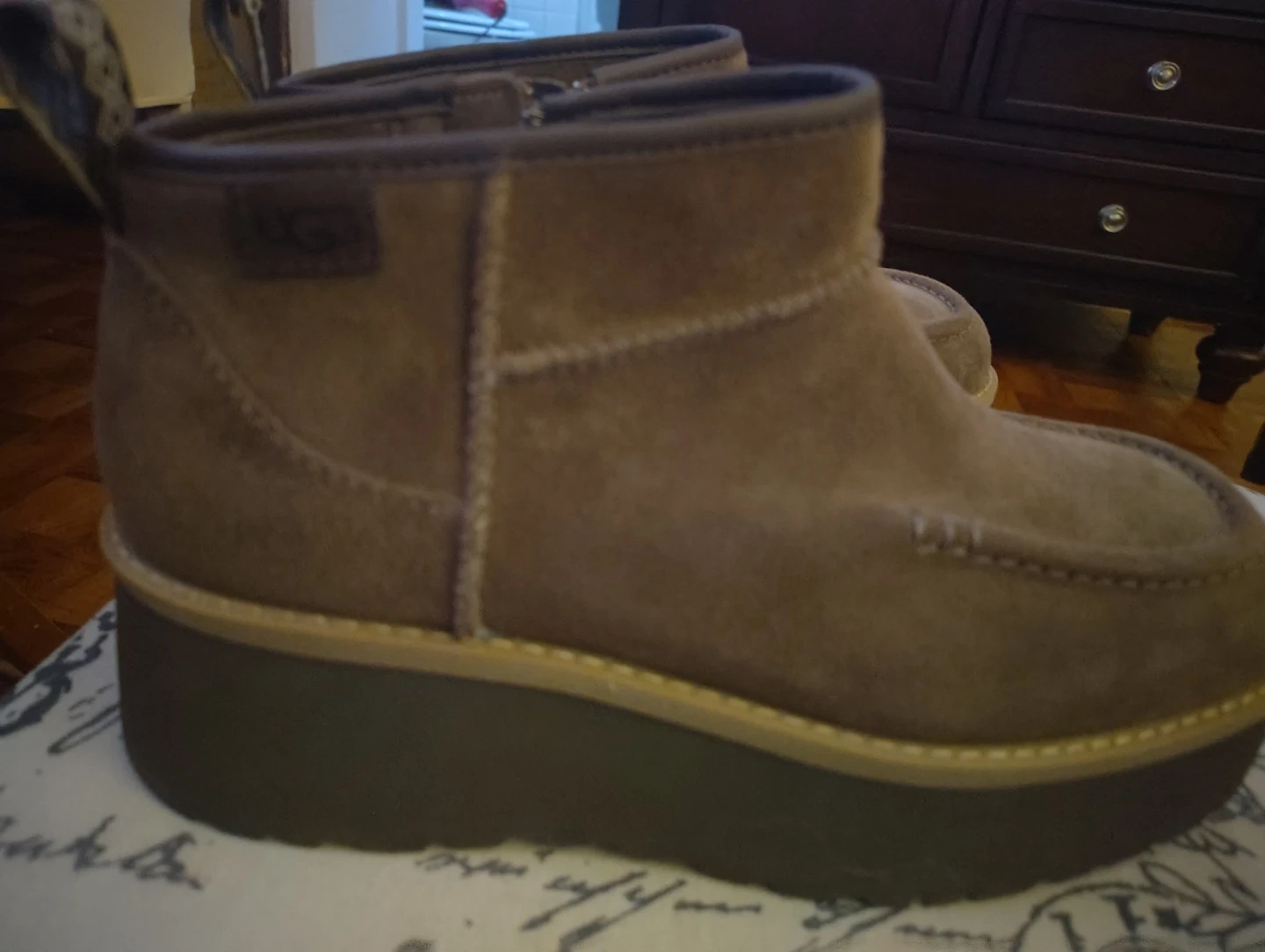 Buy & SellUgg Brown Suede Platform Ankle BootsUgg Brown Suede Platform Ankle Boots$51These Ugg ankle boots are made of brown suede with a platform sole. They feature a side zipper for easy wear. A stylish choice for casual outings!ConditionNewSize7 womenWHERE TO MEETTremont section of the bronxView MapSELLERverifiedIrmaMount Hope631 review0 chats·0 favorites·8 viewsSEND CHAT TO SELLERHi Irma! I’m interested in your listing.Hi Irma! I’m interested in your listing.Get the Karrot app to chatSign In to chat