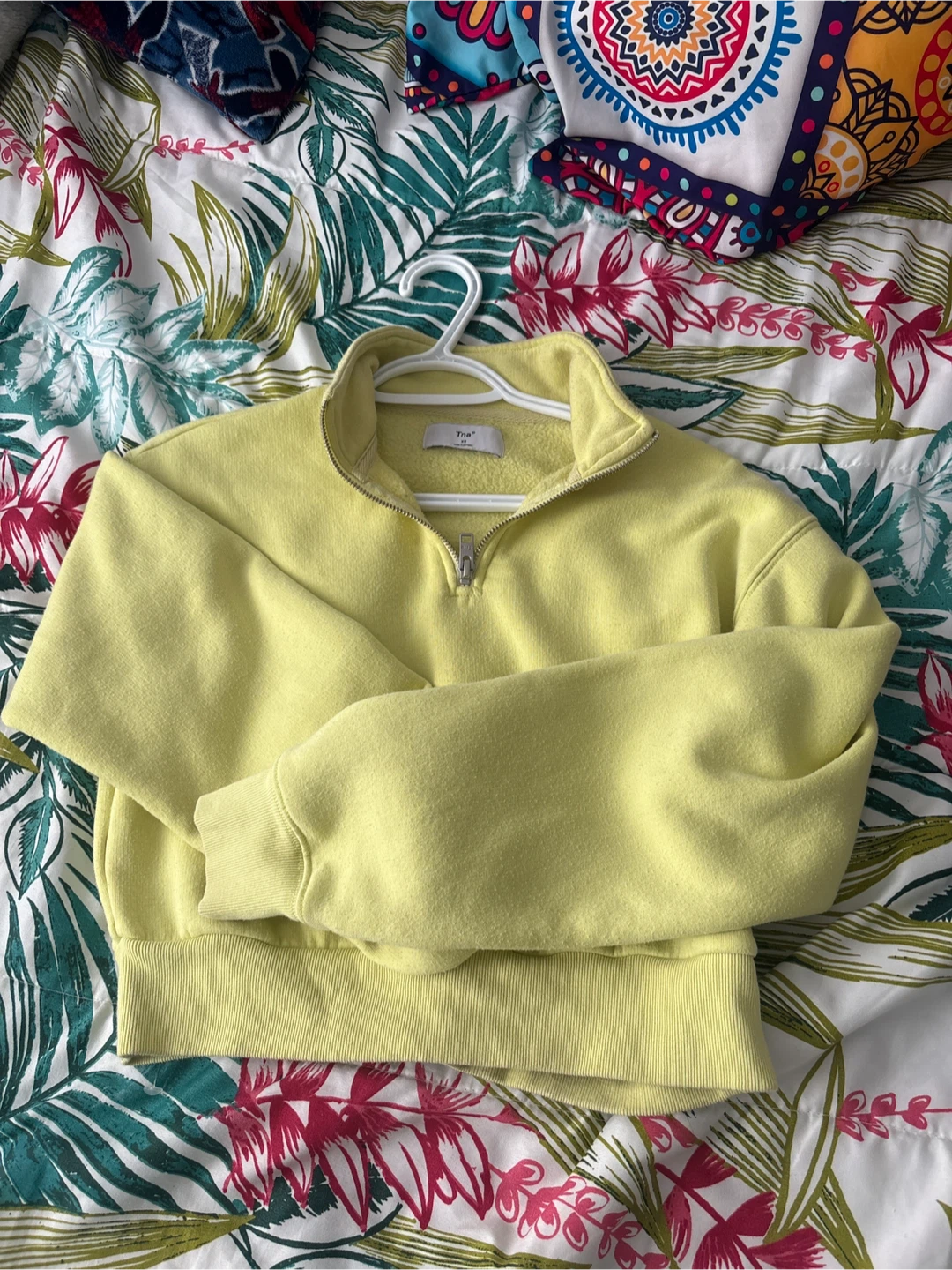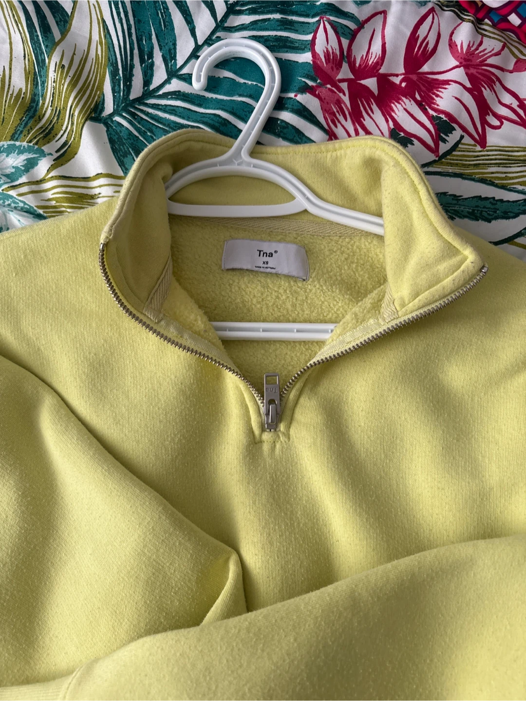 This Tna sweatshirt comes in a bright yellow hue. It's a comfortable quarter-zip style. Great for casual wear or layering! Size xsmall pick up cash only