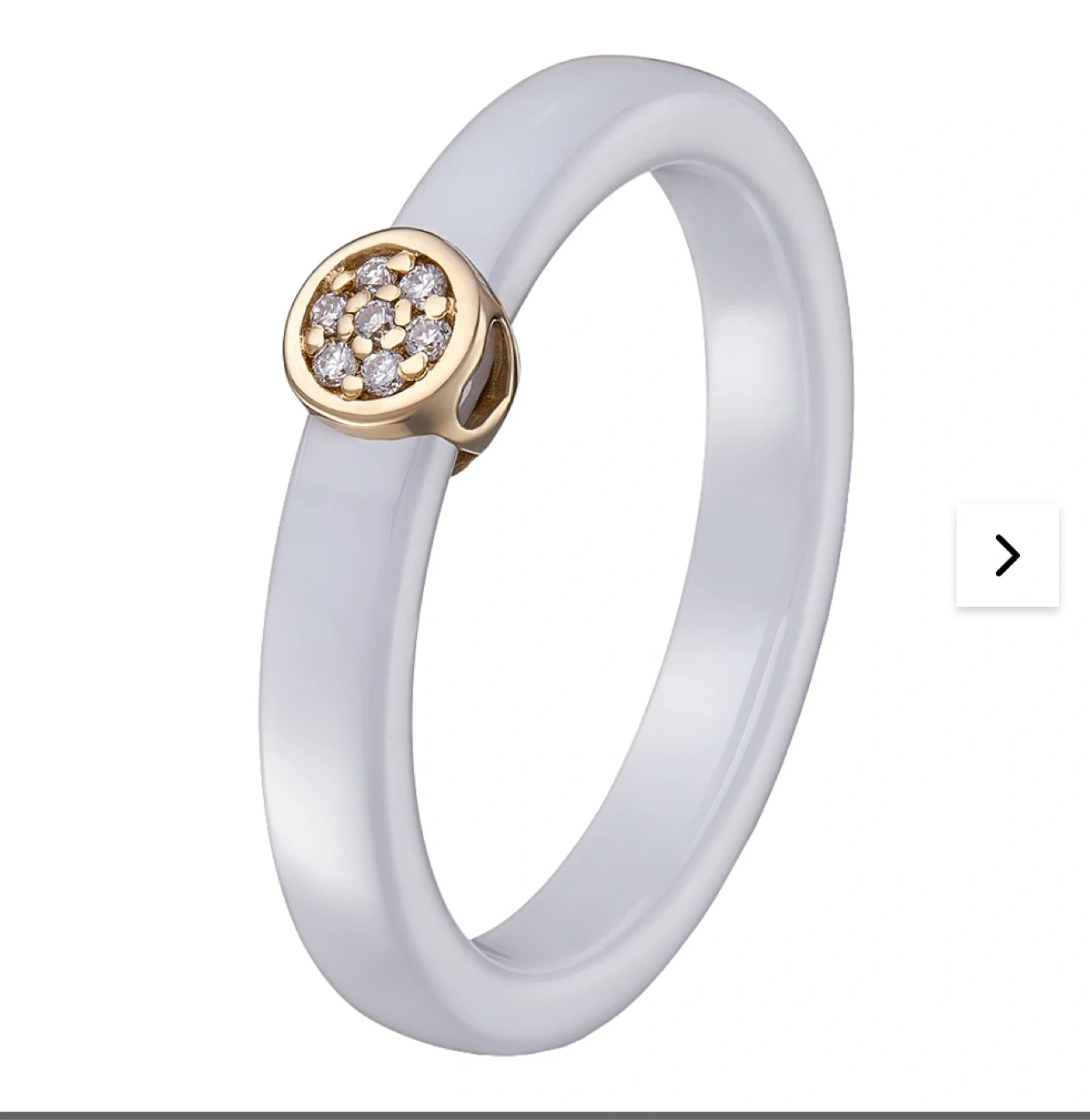 💍 Ceramic Ring with 14K Yellow Gold & Diamonds – Size 6