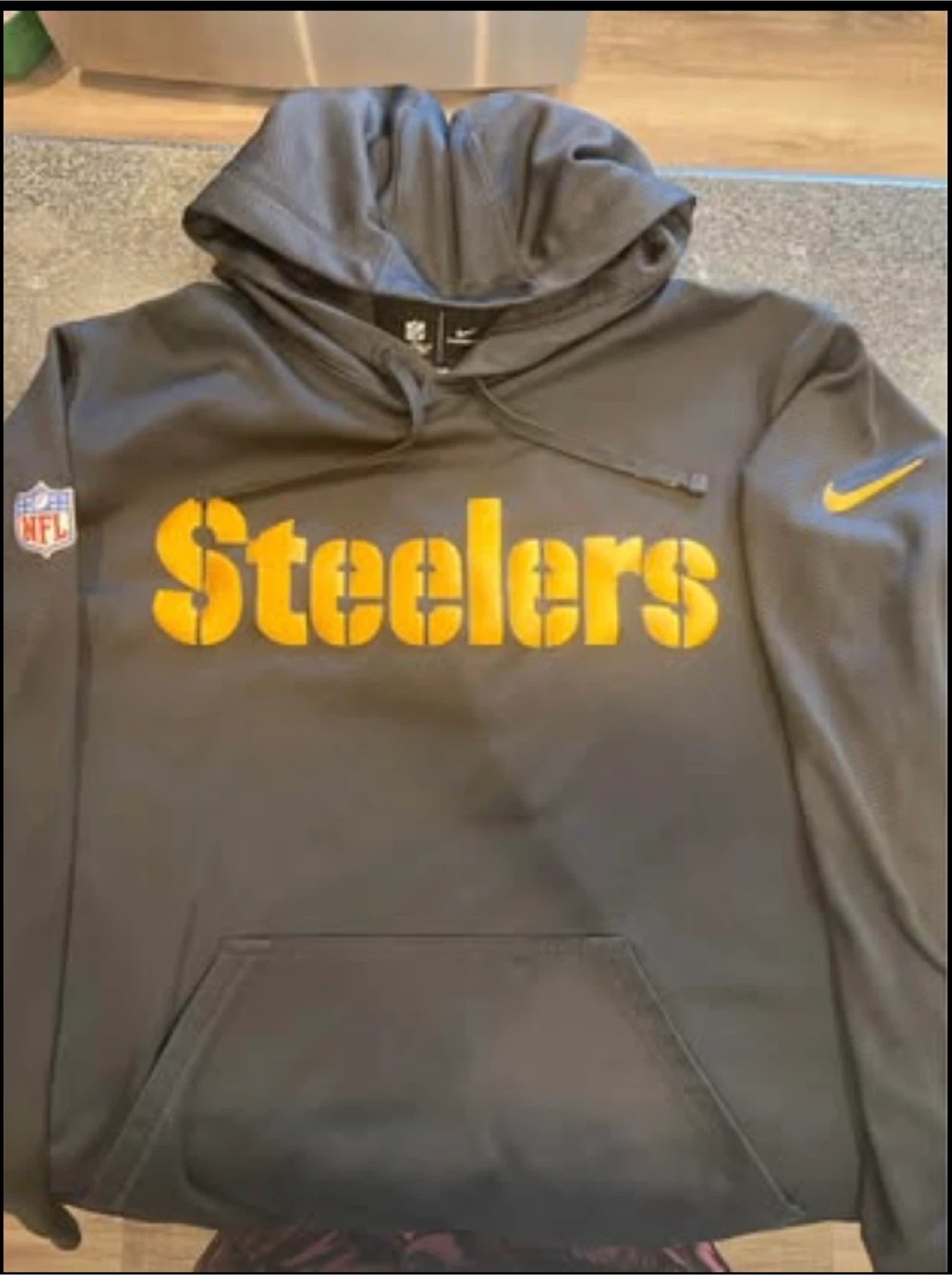 🥕Selling a Nike Therma-Fit hoodie featuring the Pittsburgh Steelers logo! It's a size large and perfect for staying warm. There's a small tear on the Nike logo as shown in the pictures.