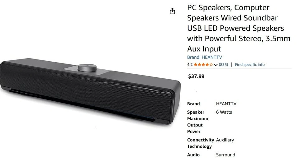 21NEW - PC Speakers, Computer Speakers Wired Soundbar USB LED Powered Speakers with Powerful Stereo, 3.5mm Aux Input