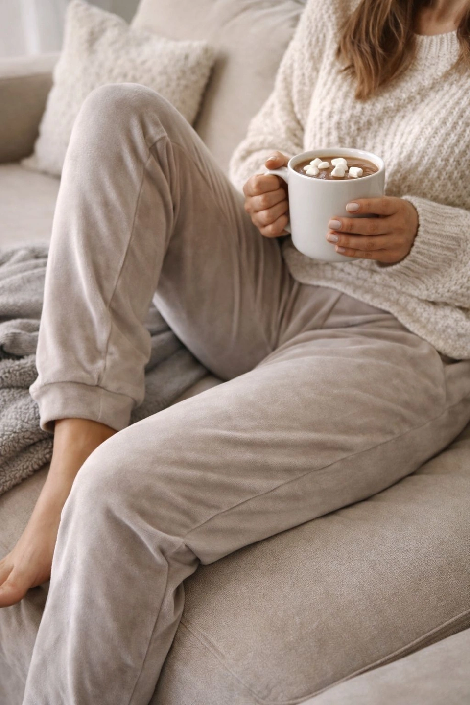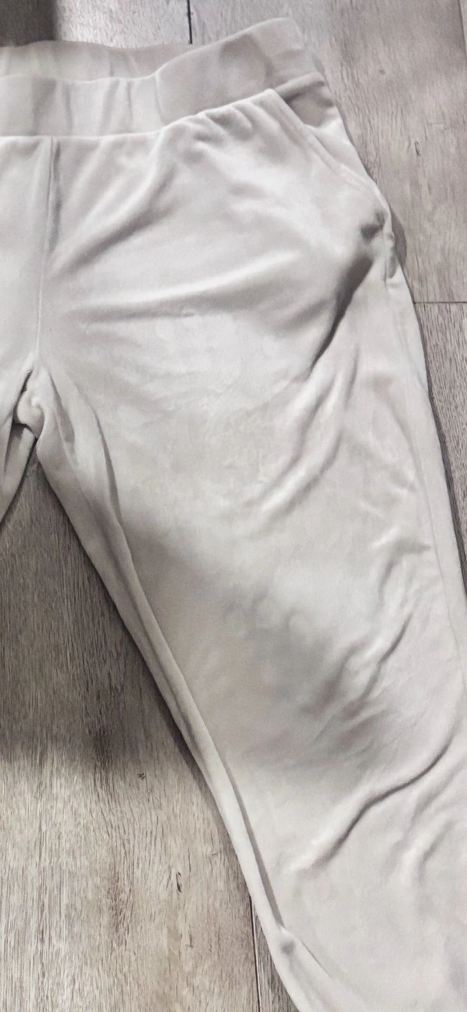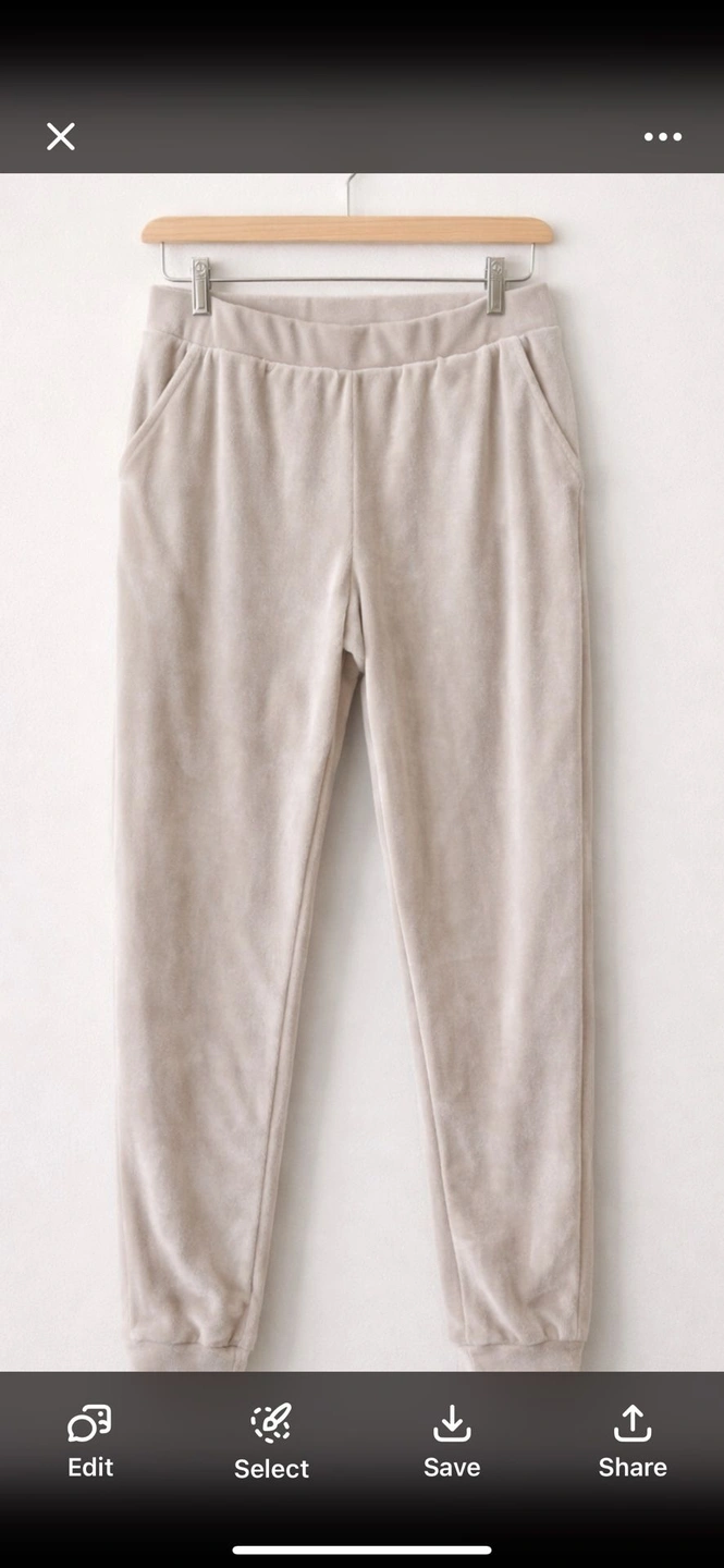 Super soft and cozy velour jogger-style pants by Time and Tru. These have a smooth, velvety feel with comfortable stretch, making them perfect for lounging, travel, or casual everyday wear. Features an elastic waistband and a relaxed fit with a tapered leg for comfort without looking bulky. Size: Large (12–14) Brand: Time and Tru Color: Neutral beige / taupe/ cream Fabric: Stretchy velour / velvety soft Excellent condition Comfortable, easy-to-style lounge bottoms that pair well with tees, sweaters, or hoodies.