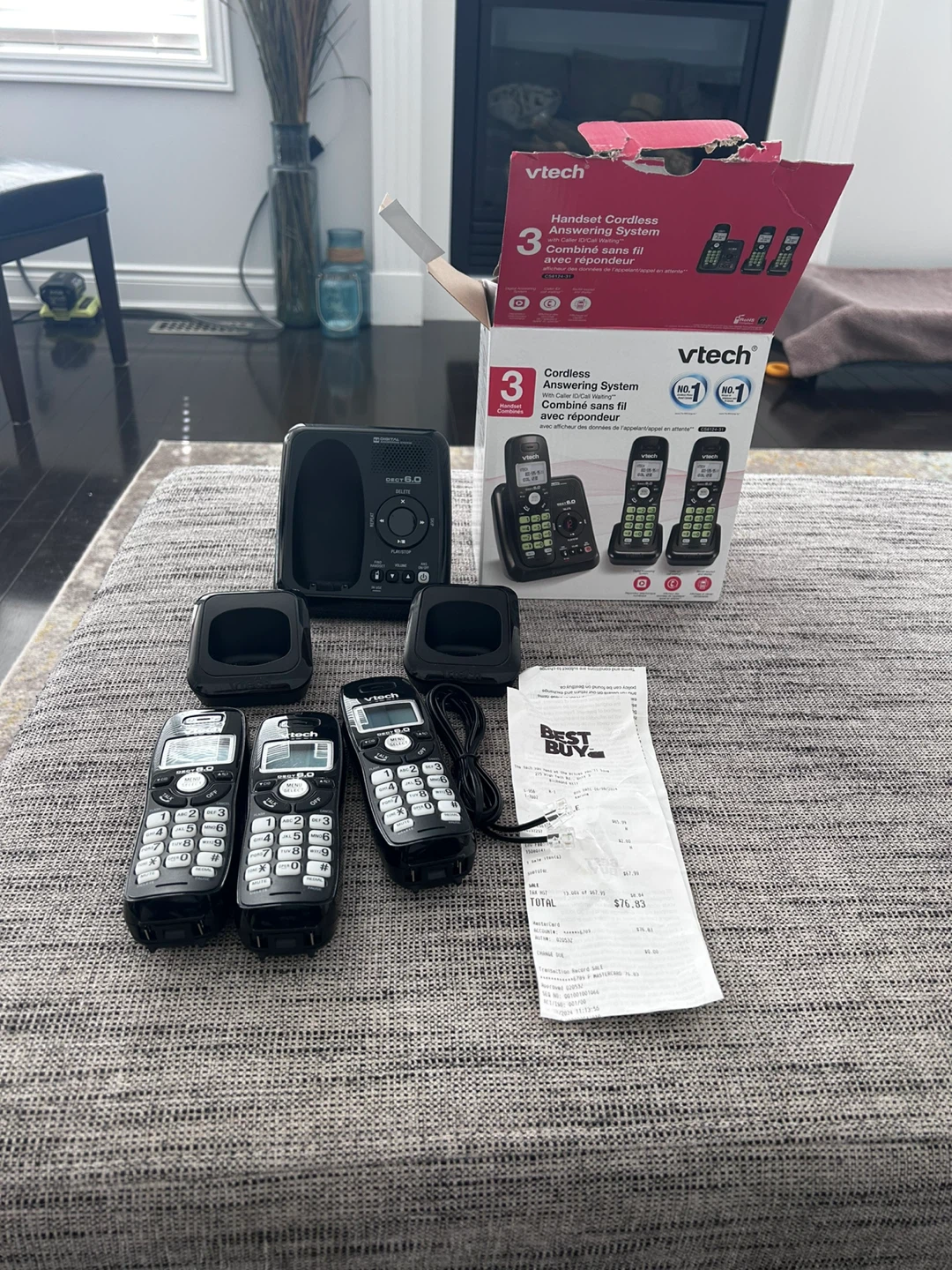 Buy & SellVTech 3 handset cordless phone setVTech 3 handset cordless phone set$10Vtech cordless phone system with 3 handsets, 3 chargers and answering system. Lightly used and purchased in 2024.ConditionLike newBrandVtech WHERE TO MEETBathurst st and Gamble RdView MapSELLERverifiedAllisonWestbrook / Mill Pond25919 reviews1 chats·0 favorites·7 viewsSEND CHAT TO SELLERHi Allison! I’m interested in your listing.Hi Allison! I’m interested in your listing.Get the Karrot app to chatSign In to chat