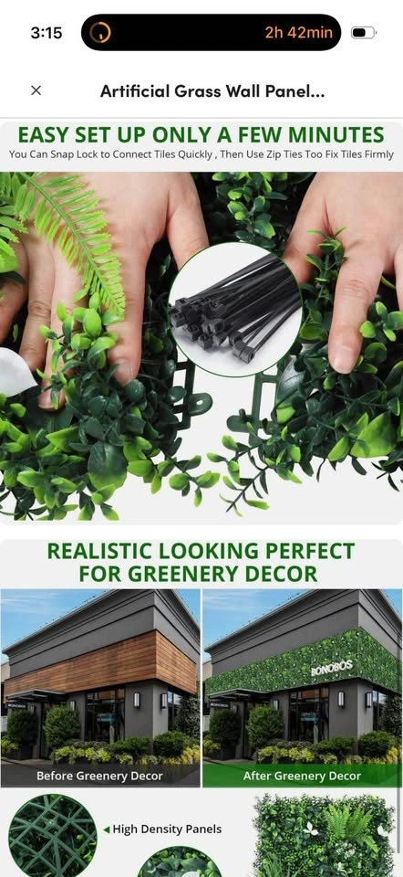 Brand new in box! Multiple boxes available. These realistic and durable 12pc 20x20 inch greenery wall panels are crafted from 100% polyethylene with a UV-resistant coating, mimicking real leaves for long-lasting color. They are sun-proof and unbreakable, designed to withstand all weather conditions. Installation is easy; just snap the panels together and use the included zip ties to secure them to a wall or fence. The panels are bendable and cuttable for customization. Featuring a high-density design, the leaves are tightly attached to reinforced joints, preventing them from falling off. These versatile panels can be used for indoor backdrops, green wall decor, garden fence enhancements, or as privacy screens. They require no watering, sunlight, or pruning, offering a hassle-free way to enjoy greenery year-round.